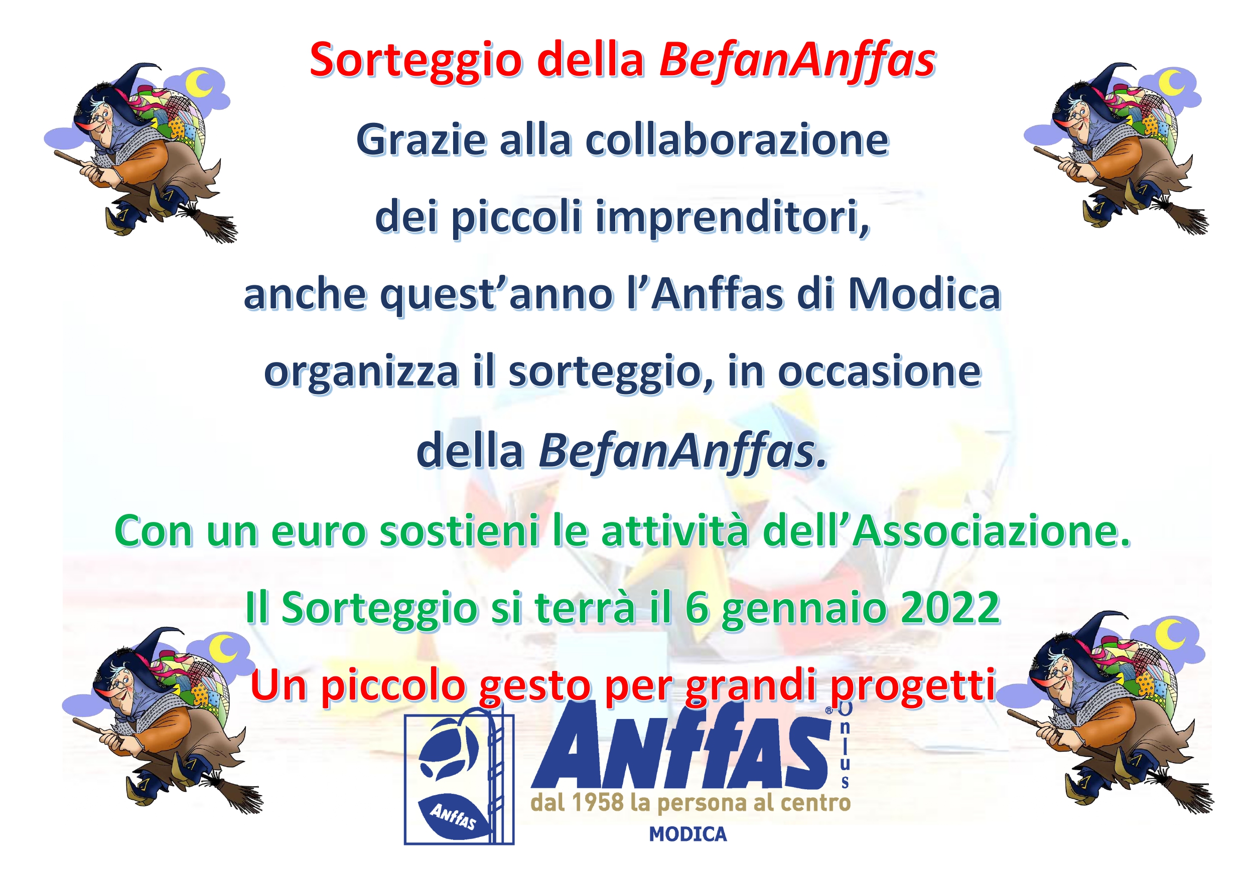 L’Anffas di Modica si prepara al Natale che verrà, tra solidarietà, impegno sociale. L’associazione sta preparando dei doni solidali, da poter fare un doppio regalo, sia alle persone che avranno un regalo solidale, un altro dono sarà per l’Anffas e i suoi ragazzi. Uno dei progetti che ogni anno l’associazione porta avanti è il sorteggio di Natale, denominato BefanAnffas, con un euro acquisti un biglietto e potrai portare a casa un dono, grazie alla collaborazione di piccoli imprenditori e artigiani di Modica, il sorteggio sarà il 6 gennaio. Un altro progetto che Anffas Modica sta portando avanti, la selezione di vini decorati a tema natalizio dai nostri ragazzi. Con la collaborazione con Feudo Ramaddini. Denominato “un Dono Solidale e di qualità”.