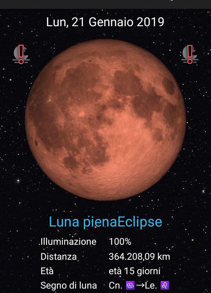 Segnatevi questo appuntamento: ore 5.40 di lunedì 21 gennaio. In Italia sarà visibile ad occhio nudo una splendida eclissi totale di Luna piena prossima al perigeo, cioè alla distanza minima dalla Terra
