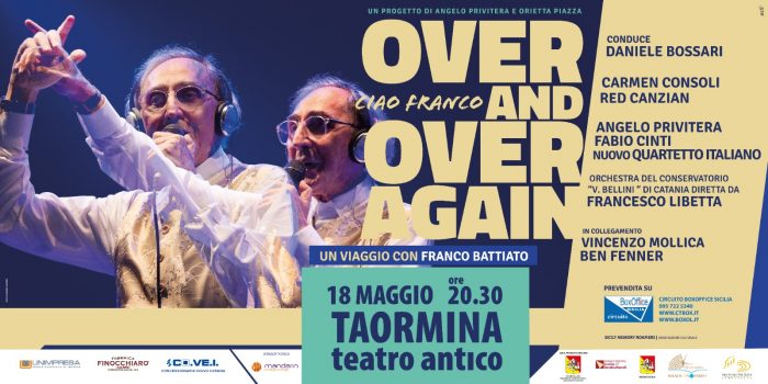 Il Teatro Antico di Taormina, la sera del 18 maggio, a un anno esatto dalla scomparsa di Franco Battiato, ospiterà il concerto ‘Ciao Franco…Over and over again’. Si esibiranno diversi artisti che canteranno brani scritti dal compositore. L’iniziativa è ideata da Angelo Privitera, tastierista che ha suonato con Battiato seguendolo in 30 anni di tournée, e Orietta Piazza. Sul palco l’orchestra del Conservatorio Vincenzo Bellini di Catania. Lo spettacolo sarà condotto da Daniele Bossari. Oltre all’esibizione di Carmen Consoli e Red Canzian sono previsti collegamenti video con il giornalista Vincenzo Mollica e con Ben Fenner, a lungo ingegnere del suono di Battiato. Sarà presente Michele Di Lernia, il discografico della Emi, etichetta de “La voce del padrone”. Padre Guidalberto Bormolini, che di Battiato è stato guida spirituale negli ultimi anni della sua vita, farà una narrazione segreta e mistica: l’artista che da Milano erano tornato a fine anni Ottanta in Sicilia per rifugiarsi sull’Etna, a Milo. Sostenuto dal Parco Archeologico Naxos Taormina e realizzato in collaborazione con la Fondazione TaoArte, “Ciao Franco…Over and over again” ha il patrocinio dell’assessorato regionale dei Beni culturali e dell’Identità siciliana.