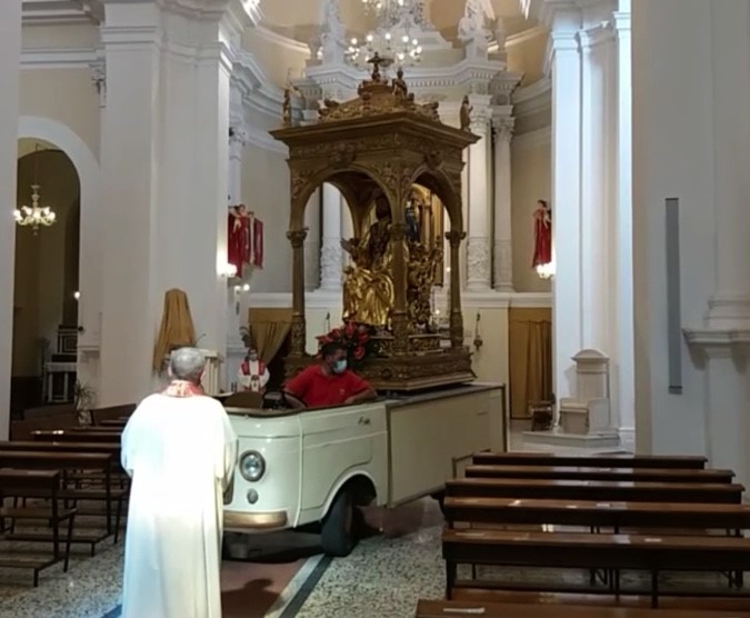 A Giarratana è festa grande. Pur con tutte le restrizioni. Ma devoti e fedeli sanno che si avvicina il momento clou del 24 agosto, la data in cui si celebra il patrono San Bartolomeo apostolo. E l’attenzione continua a crescere. Ieri, l’atto d’avvio delle solenni celebrazioni con la traslazione del simulacro. Allo stato attuale, perdurando i lavori di ristrutturazione della chiesa patronale, San Bartolomeo è ospitato in chiesa Madre. E proprio qui si è consumata, a porte chiuse, secondo il decreto vescovile del 13 giugno del 2020, la traslazione del simulacro sulla navata centrale, accanto all’altare maggiore. Un momento che è stato annunciato dal suono a festa delle campane e dallo sparo di 24 colpi a cannone. Anche se il rito si è svolto a porte chiuse, comunque il segnale è arrivato a tutti i giarratanesi che, colpiti dalle recenti vicende incendiarie che hanno distrutto il parco di Calaforno, hanno bisogno di ritrovare una dimensione spirituale il più possibile forte. Le celebrazioni, dunque, proseguiranno con il triduo a San Bartolomeo apostolo che prenderà il via sabato e che quest’anno sarà predicato da don Gaetano Noto della congregazione dei missionari del Preziosissimo sangue. Si svilupperà sul tema “Il sangue dei martiri”. A officiare il rito della traslazione, ieri pomeriggio, il parroco, don Mariusz Starckzewski, con il vicario parrocchiale, il sacerdote Francesco Mallemi. Intanto, prenderanno il via nei prossimi giorni le azioni di pulizia straordinaria promosse dall’impresa ecologica Busso Sebastiano tutt’attorno alla chiesa madre per rendere i più decorosi possibili i luoghi interessati dal passaggio dei fedeli e dei devoti in occasione delle fasi clou della festa.