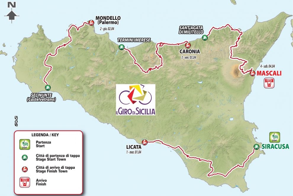 Quattro frazioni dal 1 al 4 aprile con partenza da Siracusa, traguardi a Licata, Mondello, Caronia e Mascali, con la scalata dell’Etna dal versante di Piano Provenzana, lo stesso versante che verrà affrontato dalla Corsa Rosa 2020. Altre partenze da Selinunte, Termini Imerese e Sant’Agata di Militello nell’isola che ospiterà la Grande Partenza della Corsa Rosa nel 2021.