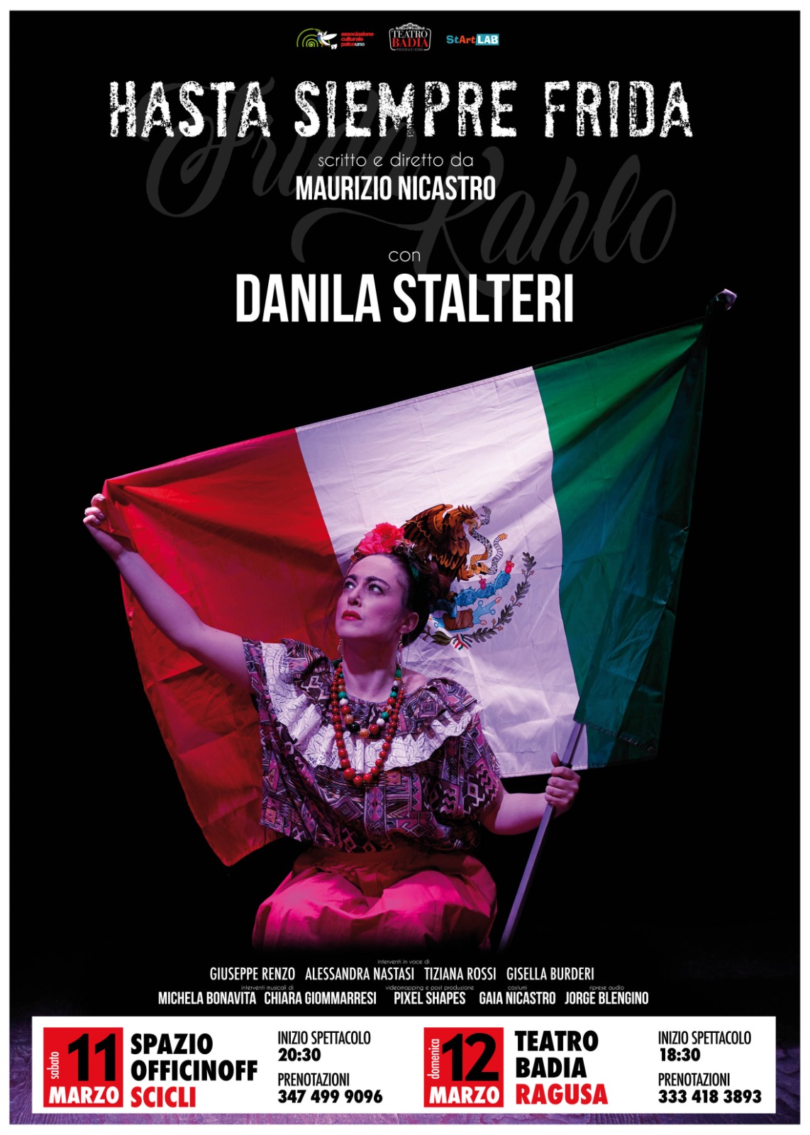 L’Associazione Culturale “OfficinOff” organizza sabato 11 marzo presso la propria sede di Scicli la performance teatrale “Hasta siempre Frida” dedicata alla celebre ed eccentrica artista che con la sua storia ricca di contraddizioni riesce ancora oggi a «incarnare la rivoluzione come concetto di modernità».