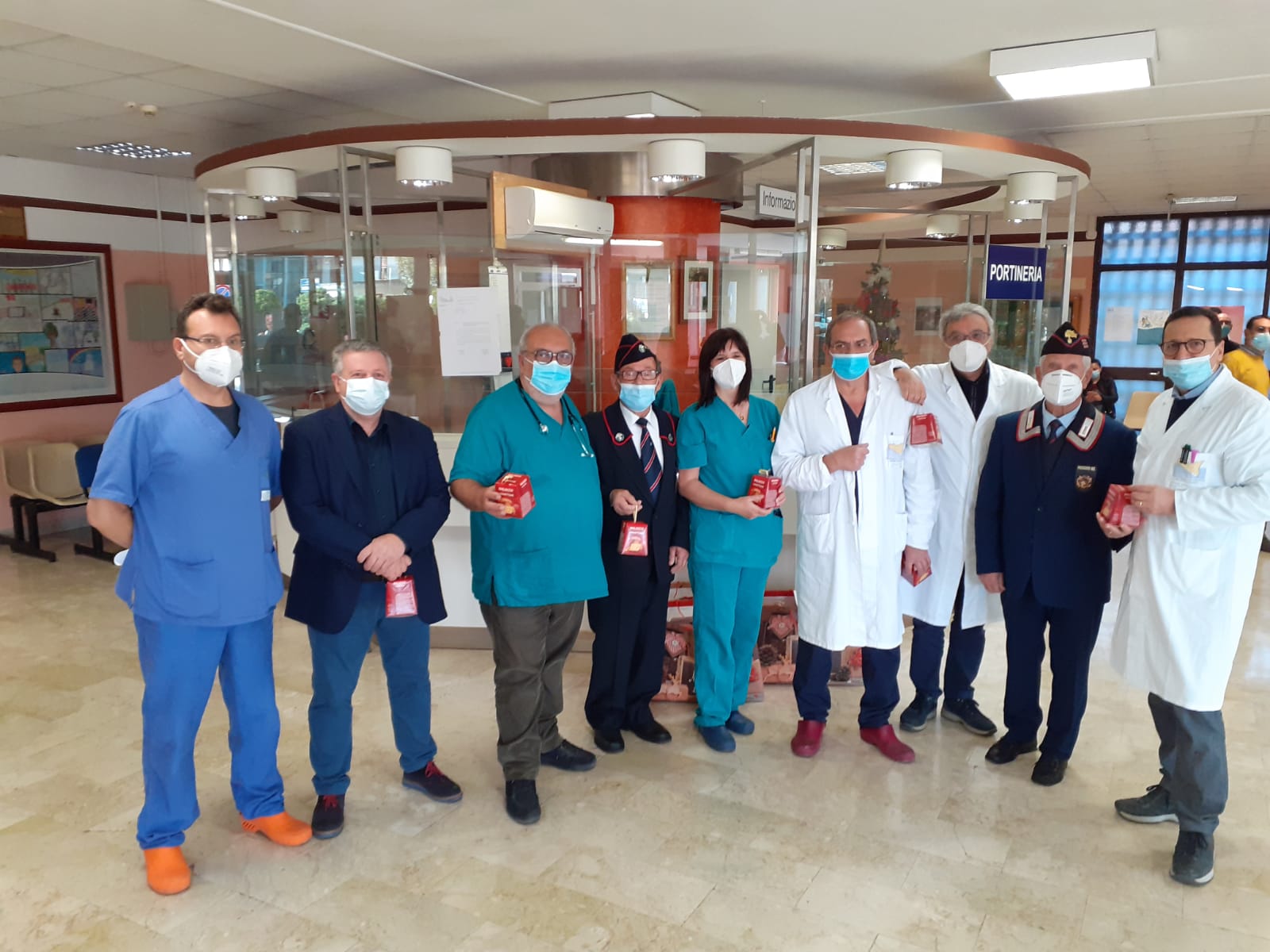 Donare un sorriso all’interno degli ospedali anche in tempo di pandemia si può. Lo ha fatto e lo fa da ben 16 anni l’Associazione Carabinieri di Pozzallo con il consigliere comunale della città marinara Francesco Giannone (che in occasione della consegna è stato delegato dal sindaco a rappresentare la città) il quale, insieme al compianto Nino Agosta, ha sempre portato avanti l’iniziativa. Nella giornata di ieri i volontari dell’associazione, insieme al Capitano della Compagnia dei Carabinieri di Modica, Francesco Ferrante e del maresciallo UPS Salvatore Benincasa, presidente della sezione di Pozzallo, si sono recati presso l’ospedale Maggiore di Modica per donare dei panettoni ai piccoli pazienti ricoverati nei Reparti di Pediatria, Ginecologia e Pronto soccorso