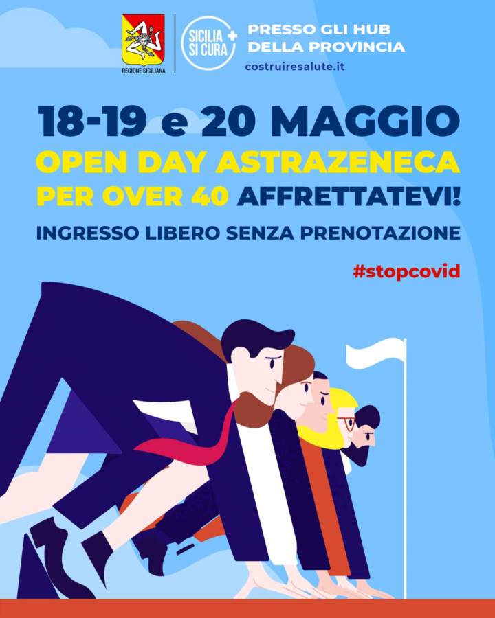 L’Asp comunica che da domani – martedì 18 maggio -, per tre giorni, gli ultraquarantenni potranno vaccinarsi con AstraZeneca in tutti gli hub dell’Isola, anche senza prenotazione. L’iniziativa del governo Musumeci punta all’immunizzazione della maggior parte di persone che, volontariamente, accettano di avere somministrato il siero anglo-svedese. Le persone del target interessate potranno presentarsi agli hub della provincia di Ragusa, dalle ore 9.00 alle 18.00: