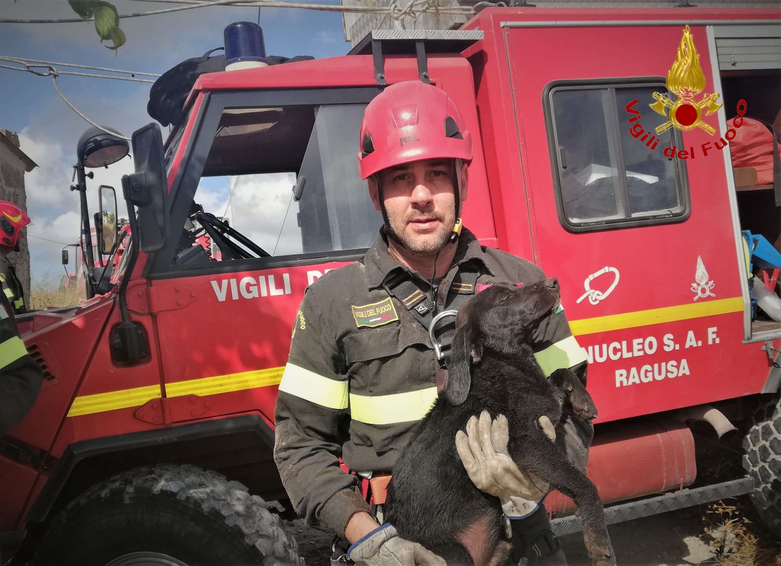 La squadra dei vigili del fuoco del distaccamento di Vittoria è intervenuta alle prime luci dell’alba per il recupero di un cucciolo di cane caduto accidentalmente in un pozzo profondo oltre 30 metri, in contrada serra San Bartolo, in territorio ipparino.