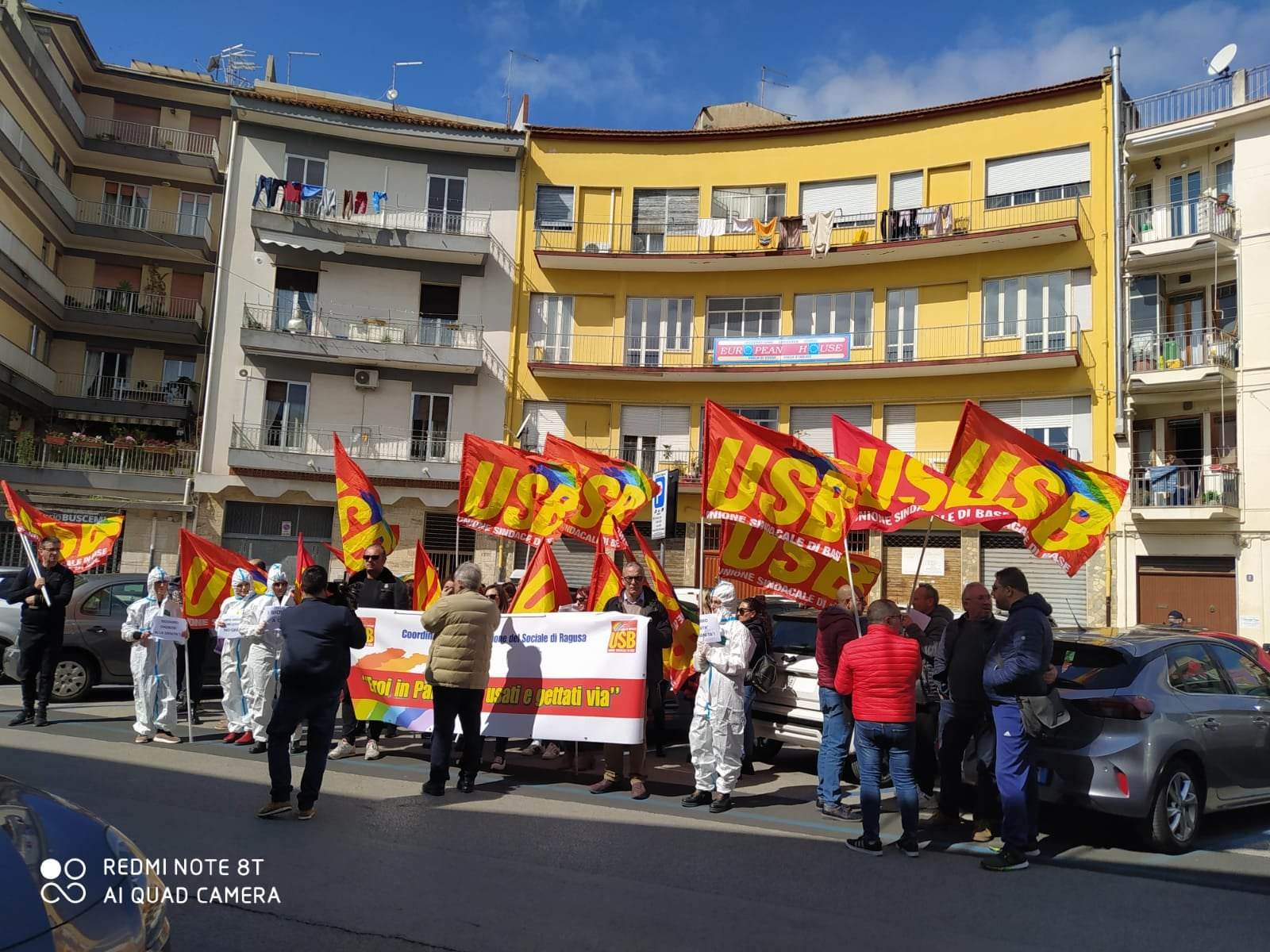 Il sit-in si è svolto stamattina in piazza Igea a Ragusa dove alla protesta si è unito un folto numero di lavoratrici e lavoratori della sanità, gli stessi che durante la pandemia venivano chiamati eroi e che adesso vengono invece licenziati.