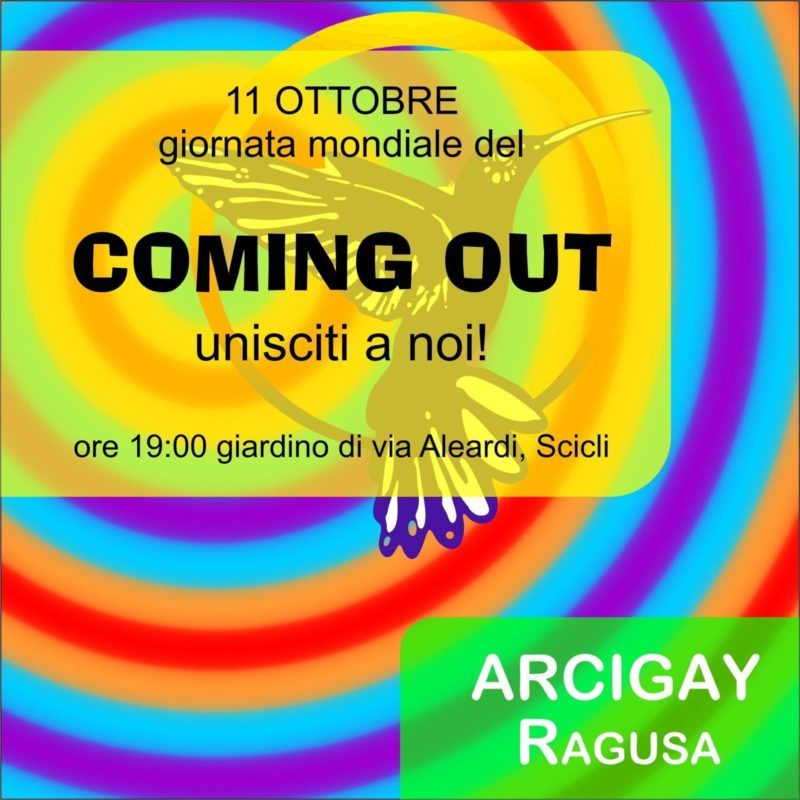 In occasione della giornata internazionale del Coming out day che sarà celebrata oggi, martedì 11 ottobre, Arcigay Ragusa vivrà un momento di condivisione a partire dalle 19.00 all’interno del Giardinetto di Via Aleardi a Scicli.