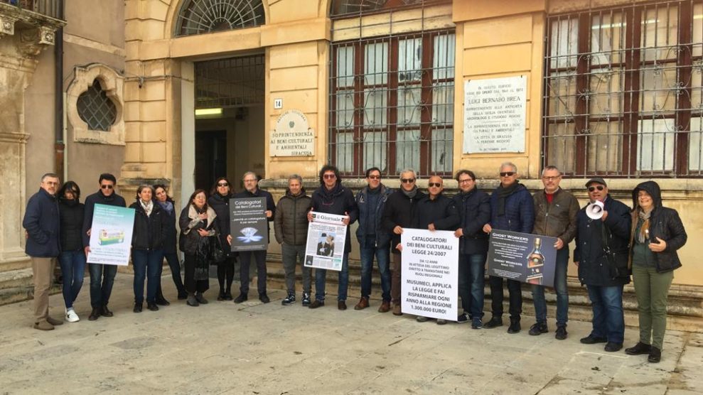 Intanto, a sostegno della vertenza avviata dai catalogatori, continuano a giungere attestazioni di solidarietà da parte di dirigenti e soprintendenti dagli è stata a Palermo insieme ai lavoratori e in una nota diffusa, ha invitato gli altri responsabili di istituto e unità operative ad aderire al sit-in. Solidarietà espressa anche dalla soprintendente BB.CC.AA. di Siracusa, Donatella Aprile che in più occasioni ha sottolineato l’importanza del lavoro svolto dal personale catalogatore per il Dipartimento BB.CC della Regione. Una storia che parte da lontano quella della catalogazione, lo ricordiamo, l’attività di registrazione, descrizione e classificazione di tutte le tipologie di beni culturali per individuare e conoscere i beni, documentarli in modo opportuno e archiviare le informazioni raccolte secondo precisi criteri informatici. Nel 1986 la Regione, attraverso i fondi per il Mezzogiorno, esternalizza il servizio di catalogazione dei beni culturali siciliani. Nascono così i consorzi che assumono, con contratto annuale, architetti, ingegneri, geologi, storici dell´arte ragionieri, geometri ed in seguito bibliotecari ed archivisti. L’anno seguente l´obiettivo è «il recupero del barocco» e nell´88 «il recupero del barocco nelle zone interne della Sicilia» e poi «la riqualificazione degli edifici ecclesiastici». Nel 1995, per effetto della legge regionale 25/1993 i catalogatori vengono contrattualizzati per tre anni dalla Regione, scaduto il contratto triennale, dopo un anno di pausa, proseguono l’attività nel ’99, come lavoratori socialmente utili. Dal 2000 al 2008 continuano a lavorare per la Regione che di li a poco istituisce elenchi speciali di Esperti catalogatori e Catalogatori, reclutati attraverso evidenza pubblica. Nel 2007 per effetto della legge regionale 24/2007 i lavoratori vengono assunti temporaneamente dalla società partecipata, Beni Culturali spa.