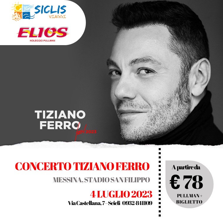Per un’estate piena di musica non possono mancare i concerti dal vivo. La Siclis Viaggi lo sa, per questo organizza trasferte nei luoghi più suggestivi per offrire ai suoi clienti i concerti con gli artisti più apprezzati dal pubblico. Sono già disponibili i biglietti per il concerto di Tiziano Ferro che si terrà il 4 luglio 2023 presso lo Stadio San Filippo di Messina il cui costo parte da 78 euro, comprensivo di viaggio andata a ritorno e biglietto d’ingresso.