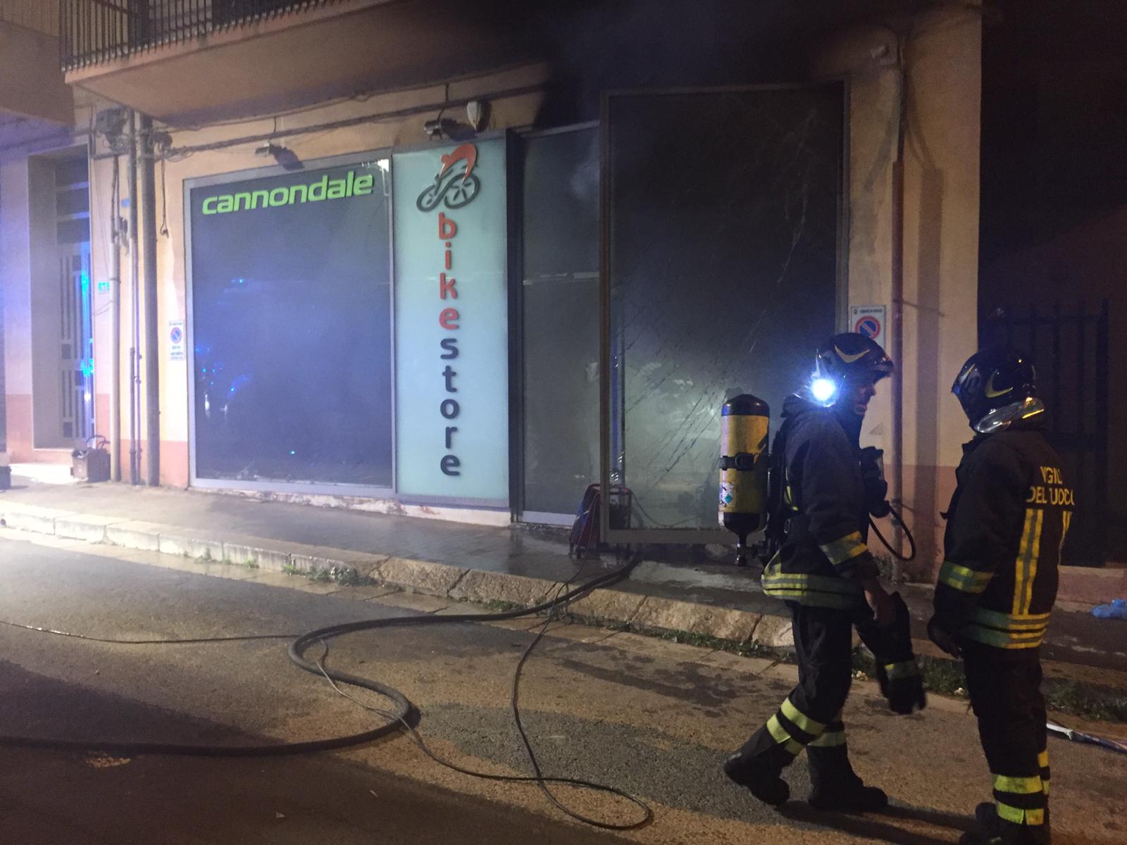 A fuoco un negozio di biciclette nel centralissimo corso Vittorio Veneto. Ustionato il titolare, accorso sul posto quando è scattato l'allarme