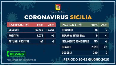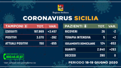 Coronavirus, in Sicilia nessun nuovo caso e nessun decesso. Mentre gli attuali positivi scendono a 150