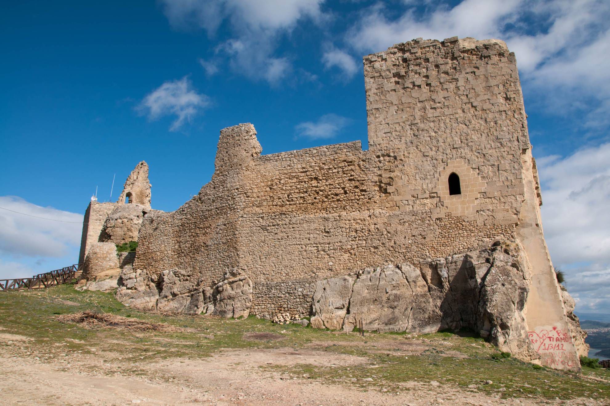 Castello di Assoro, Assoro: from the analysis of what remains of the Castello di Assoro, scholars tell us that it was probably a Byzantine fortification conquered in 939 by the Arab gualdana of Chalil. The Castle was conquered by the Normans and with a deed of sale signed by Roger II passed to the bishop of Catania who acquired the feudal right. From the irregular polygonal planimetry, the Castle presents the walls ending in a circular tower and a second wall with windows looking towards the valley. It is likely that the castle developed beyond the current urban park and up to the town.