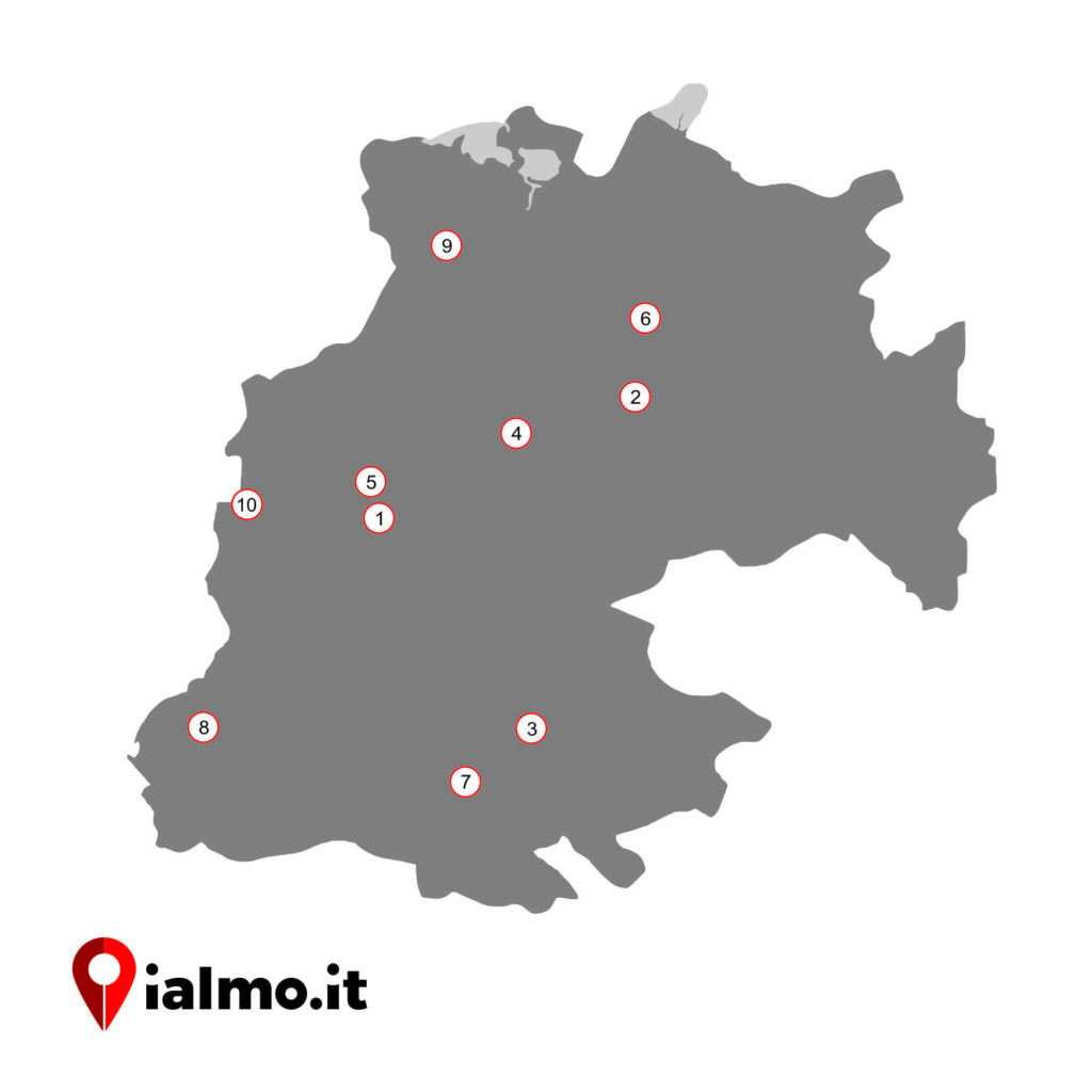 Castello di Lombardia, Enna: from the Swabian period, the Castle stands where, in the fifth century BC, there was a sanctuary dedicated to Ceres. Replaced by a castrum under the Byzantines, in the Norman era it became a castle. The name derives from the Lombard infantry who occupied it following the queen Adelaide of Monferrato, wife of Roger I of Sicily. The main attraction of the Castle is the so-called Torre Pisana, one of the best preserved of the old Castle. Another important building in Enna is the Tower of Frederick II, a defense tower from whose top you can wander with the gaze on the whole upper city and the valleys below up to Mount Etna. The Tower dates back to the thirteenth century and was built by the will of Emperor Frederick II on the probable remains of the Greek theater. Its octagonal shape, which follows the eastern model of the sacred Temple of Jerusalem, suggests that it was used for the wind rose.