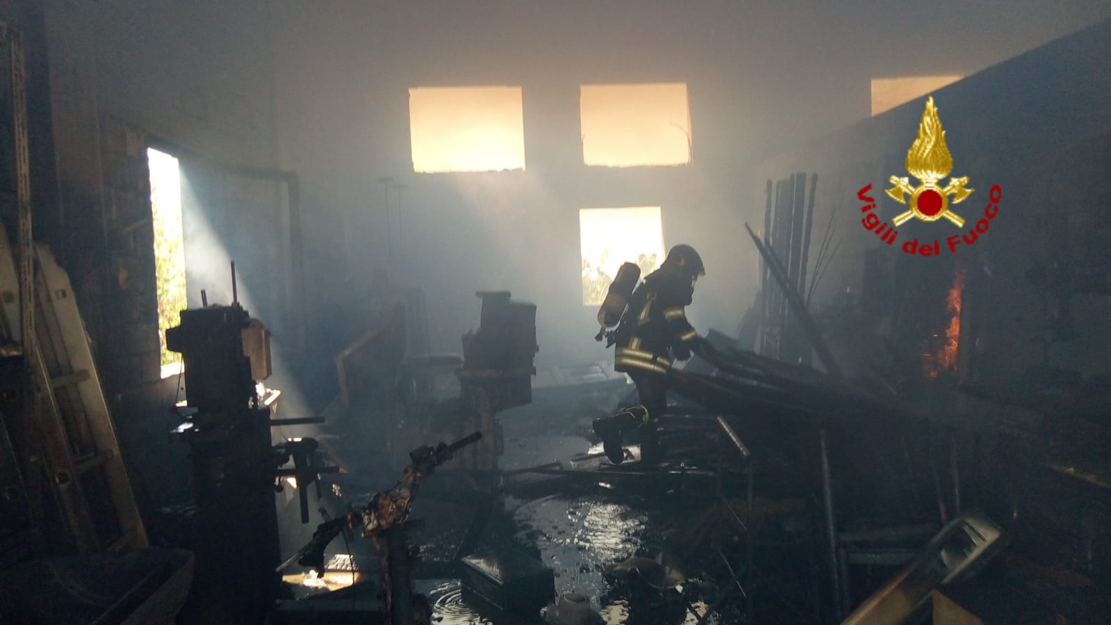 Corto circuito e fiamme in una falegnameria, a Sampieri