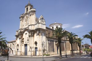 - Chiesa Matrice: edificata nel 1566, fu ampliata agli inizi del Seicento e arricchita per via dell’aumento della popolazione. Distrutta dal devastante terremoto della Val di Noto del 1693, venne riedificata agli inizi del XVIII secolo. A croce latina, è composta da tre navate e presenta un’imponente facciata in pietra bianca ispirata allo stile di Francesco Battaglia (1701-1778) per la presenza di colonne, cornici e trabeazioni tipiche della sua arte. Il presbiterio presenta un coro ligneo e affreschi di Paolo e Alessandro Vasta della metà del Millesettecento. Di fianco all’altare, vi sono un imponente battistero che risale al 1613, nonché un pulpito ligneo del 1725. Degno di menzione, il dipinto posto al di sopra dell’altare che ritrae Sant’Antonio Abate, realizzato dal pittore messinese Michele Panebianco (1806-1873). Le due cappelle in corrispondenza delle navate minori sono dedicate al Santo Patrono, Antonio Abate, e al Santissimo Sacramento. Sul fianco destro della chiesa è presente ’A Casa â Vara, ossia un ambiente che custodisce il fercolo del Santo Patrono e le quattro Cannalore (Candelore, gli imponenti Cerei di antica memoria) legate alla festa patronale, ciascuna relativa ad una specifica categoria: quella dei Contadini, quella dei Commercianti, quella degli Artigiani e quella degli Impiegati.