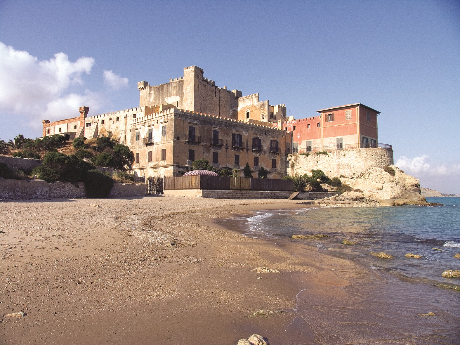 Tra i meglio conservati della Sicilia, il castello risale al XIV secolo e si affaccia sul mare nei pressi della magnifica costa di Marina di Butera. Ampliato e rafforzato nel corso del tempo, mantenne la sua funzione di vigilanza contro le incursioni dei pirati fino a tutto il XVIII secolo. Il nucleo originario era costituito dalla vecchia torre quadrata, detta “della falconara” per l’allevamento di falconi che avveniva al suo interno. Nel 1392, Martino I, lo assegnò in feudo, con la contea di Butera, a Ugone Santapau. Il castello passò poi a tutti i successori della famiglia Santapau, finché finì nelle mani di Ambrogio Branciforti, principe di Butera dal 1563. All’inizio dell’800, Caterina Branciforti, principessa di Butera, sposò in seconde nozze l’ufficiale tedesco Giorgio Welling e trasformò il castello in una residenza signorile edificando un’imponente ala rivolta verso il mare. Durante i moti del 1848 il castello fu venduto ad Antonio Chiaramonte Bordonaro il quale fece edificare un nuovo corpo staccato dal castello e disposto parallelamente al mare. Oggi il castello, un edificio unitario ma articolato nei suoi volumi, frutto delle tre fasi costruttive differenti, mostra ancora integra la struttura quattrocentesca aragonese: la corte è aperta su un lato e l’ingresso avviene attraverso un grande portone ad arco. L’interno è arredato con mobili pregiati e uno dei saloni ospita una collezione di trofei di caccia dell’attuale proprietario, il barone Gabriele Chiaramonte Bordonaro Alliata, che vi abita per certi periodi dell’anno e affitta parti dello stesso a terzi per attività ricettive e di ristoro.