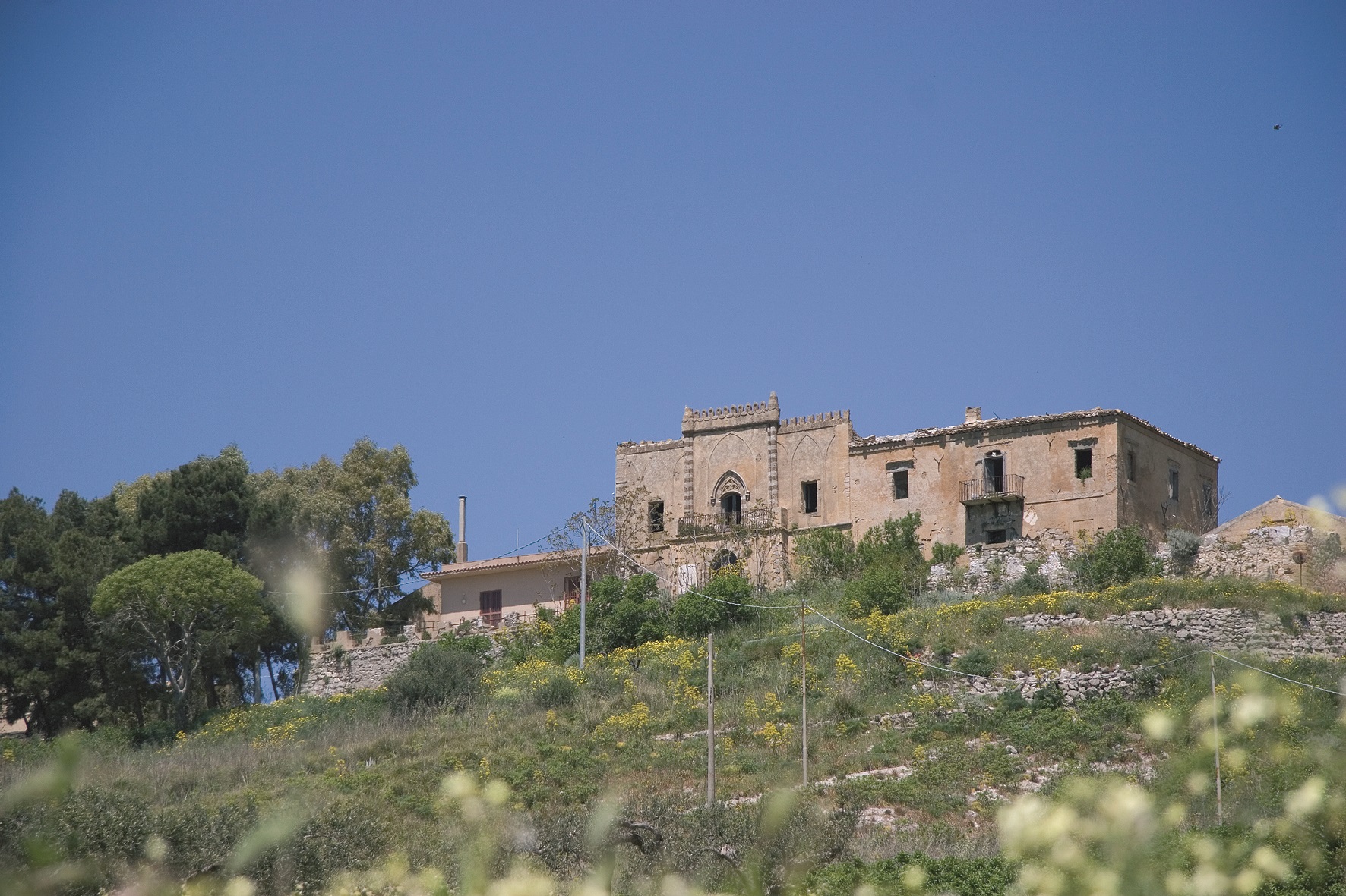 Tra gli edifici religiosi si segnalano l’antica chiesa del Purgatorio e quella della Badia, costruita tra il XVIII ed il XIX secolo; il centro storico è poi arricchito dai palazzi Patti e Mauro; di grande fascino ed importanza storica anche i ruderi dell’antico centro ed i resti della chiesa e del convento dedicati a Sant’Anna. Segnaliamo poi il Castello Rampinzeri che sorge su un’altura, in una splendida posizione panoramica, e deve il suo di etimologia araba all’omonimo feudo che fu dei Giardina Bellacera e poi della famiglia De Stefani ed oggi proprietà del Comune. Si tratta di un antico baglio seicentesco con due cortili e una chiesetta trasformato, nei secoli XVIII e XIX, fino ad assumere l’aspetto di castelletto neogotico.