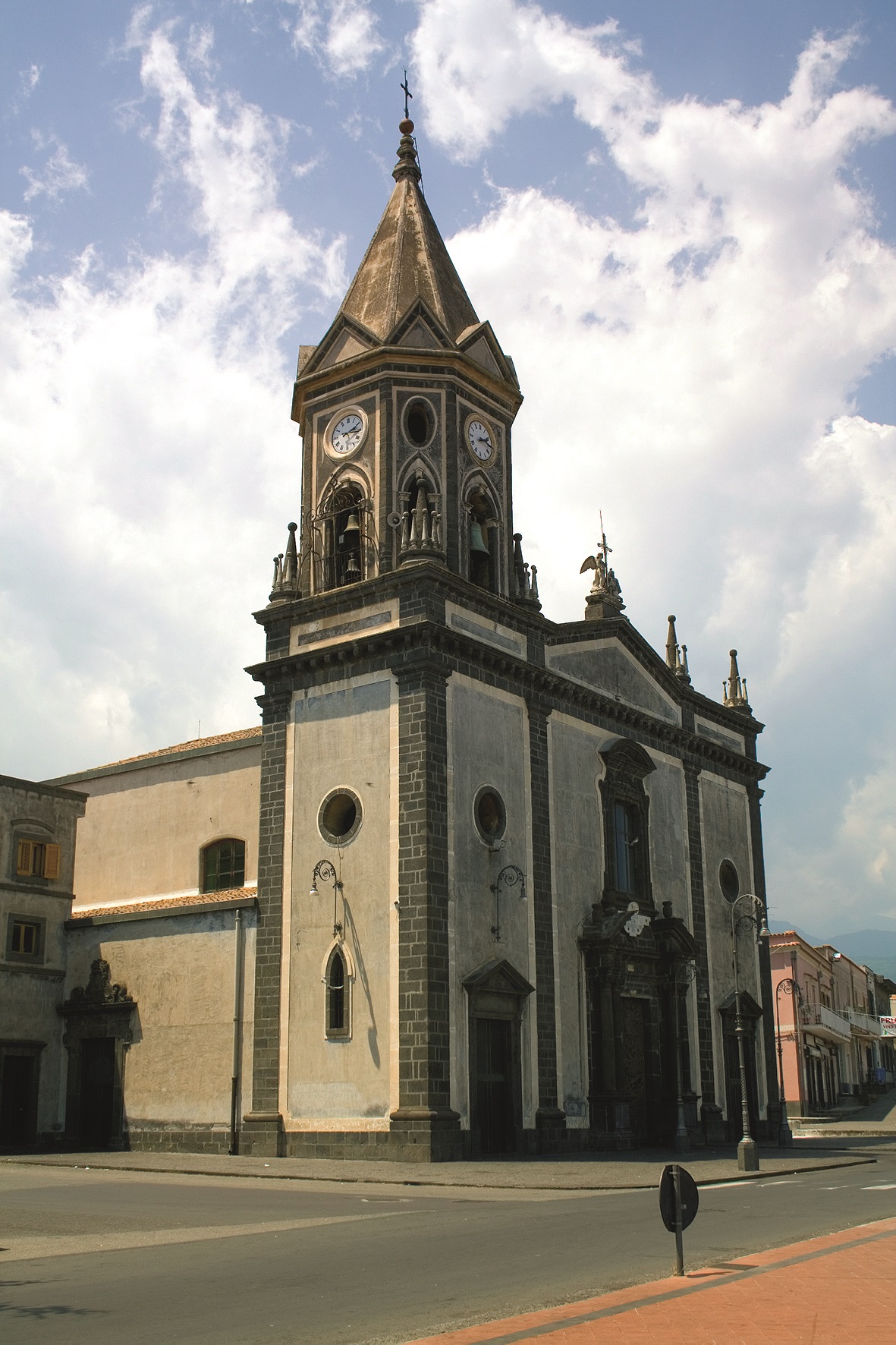 Dalla Chiesa madre, dedicata a San Nicola di Bari e costruita intorno al 1400, si gode di un panorama che spazia dall’Etna ad Augusta, da Taormina alla Calabria. Ampiamente rimaneggiata dopo il 1693, gran parte della sua struttura è realizzata in pietra lavica; al suo interno si trovano altari in marmo intarsiato, un monumentale organo di metà Ottocento ed i resti di un affresco attribuito a Paolo Vasta.
