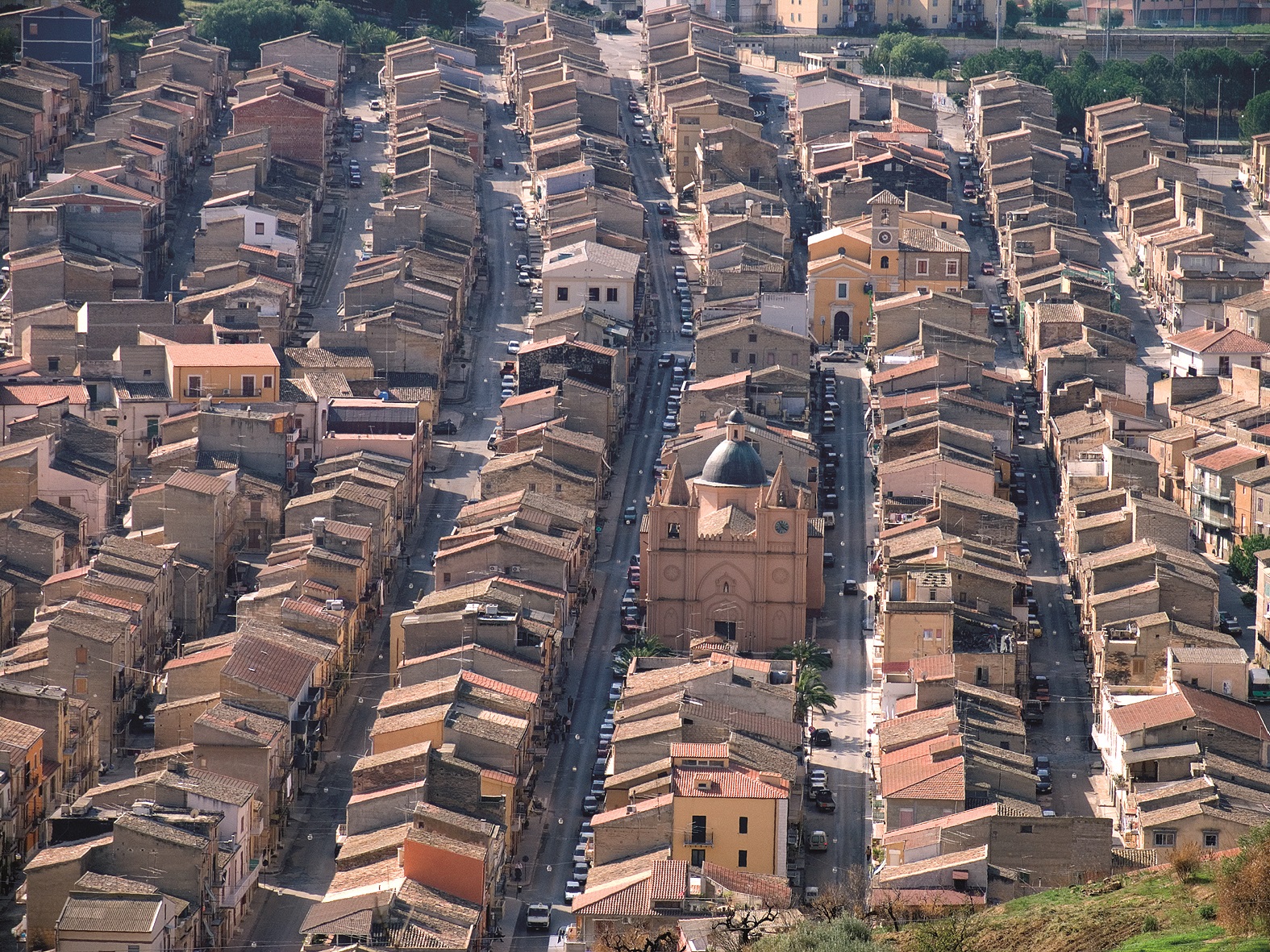 Centro storico – Osservare la cittadina dall’alto delle colline che la circondano permette di ammirare la regolarità della struttura urbana, unica nel suo genere. Isolati urbani perfettamente allineati in una formazione a lisca di pesce, ed un’asse centrale. L’intero complesso urbanistico sembra quasi ruotare intorno al punto focale: la Chiesa Madre.