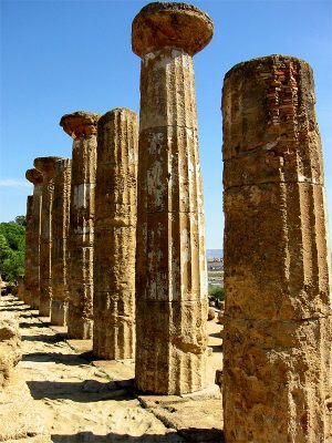 Valle dei Templi, Agrigento: Nel 1997 la Valle dei Templi è stata dichiarata dall’UNESCO Patrimonio dell’Umanità. Gli edifici sacri, disposti ad est per accogliere la luce del sole nascente, furono eretti nel corso del V secolo a.C. seguendo i dettami dello stile dorico. Il Tempio della Concordia nel VI secolo fu trasformato in una chiesa, mentre nel Tempio di Giunone, dedicato alla dea Hera Lacinia, protettrice del matrimonio e del parto, si svolgevano i riti nuziali. Il Tempio di Eracle è il più antico e conservava la statua bronzea dell’eroe. A Zeus Olimpico era invece dedicato il tempio eretto in onore della battaglia di Imera del 480 a.C., quando gli abitanti di Agrigento sconfissero i Cartaginesi. Il simbolo cittadino rimane tuttavia il Tempio di Castore e Polluce, che celebra i Dioscuri, ma riveste un ruolo di assoluto pregio anche il Tempio di Vulcano, che si lega alla leggenda del dio del fuoco che sotto l’Etna fabbricava i fulmini di Zeus aiutato dai Ciclopi. Il Tempio di Esculapio, infine, raccoglieva le suppliche dei malati iscritte sulle pareti. La piramidale Tomba di Terone ricorda invece i caduti nella Seconda Guerra Punica. Altro sito archeologico importante è la Rupe Atenea, il punto più alto dell’antica città di Akragas, dove sono stati rinvenuti resti di un frantoio ellenistico e dove è conservato uno dei numerosi templi delle divinità ctonie, oggi incorporato nella chiesetta medievale di San Biagio.