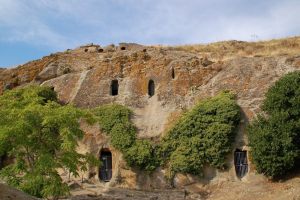 Grotte della Gurfa, Alia: si trovano a pochi chilometri dal paese e rappresentano un insolito esempio di architettura rupestre. Le sei caverne sono scavate lungo una parete di pietra arenaria rossa e disposte su due piani. La loro origine sembra risalire al IV/VI millennio a.C. Al livello inferiore sono stati ricavati due grandi vani dotati di ingressi indipendenti comunicanti tramite una galleria. Il primo vano ha pianta quadrangolare e presenta una copertura a due spioventi con colmo centrale. Il secondo ambiente, a pianta circolare, è dotato di un profilo campaniforme che culmina in un foro centrale. Attraverso gradini scavati nella parete rocciosa si accede al livello superiore costituito da quattro ambienti di forma rettangolare e comunicanti fra loro mediante brevi passaggi. Il secondo livello si affaccia dentro il grande spazio del vano campaniforme. L’ambiente a thòlos monumentale della Gurfa, con la sua camera funeraria dal tetto “a tenda” del piano terra, è associabile a quelli ellenici, datati attorno al 1400 a.C.