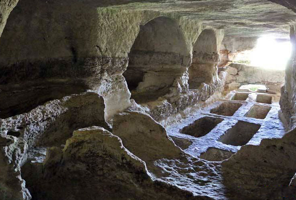 - La catacomba dellaLarderia, un cimitero ipogeico che in circa 500 m2 racchiude ben 464 tombe, suddivise in tre gallerie sotterranee, delle quali la principale è lunga circa trenta metri. Il sito è in effetti una vera e propria città nella roccia dove, nei pressi delle grotte abitate dagli uomini e dagli animali domestici, ve n’erano altre adibite a magazzini, o a luoghi di culto con altari e affreschi sulla nuda roccia.