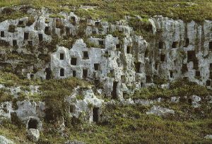 Cava Ispica, Versante Nord, Modica: è la più importante delle cave nella Sicilia orientale. Lunga 13 km si estende nel territorio dei comuni di Modica, Ispica e Rosolini. È attraversata da un torrente che prende il nome di Pernamazzoni a settentrione e Busaitone a meridione. Nella parte Nord della Cava, con pareti rocciose più adatte all’insediamento umano, ritroviamo necropoli preistoriche, catacombe cristiane, oratori rupestri, eremi monastici e nuclei abitativi di tipologia varia. Si segnalano: