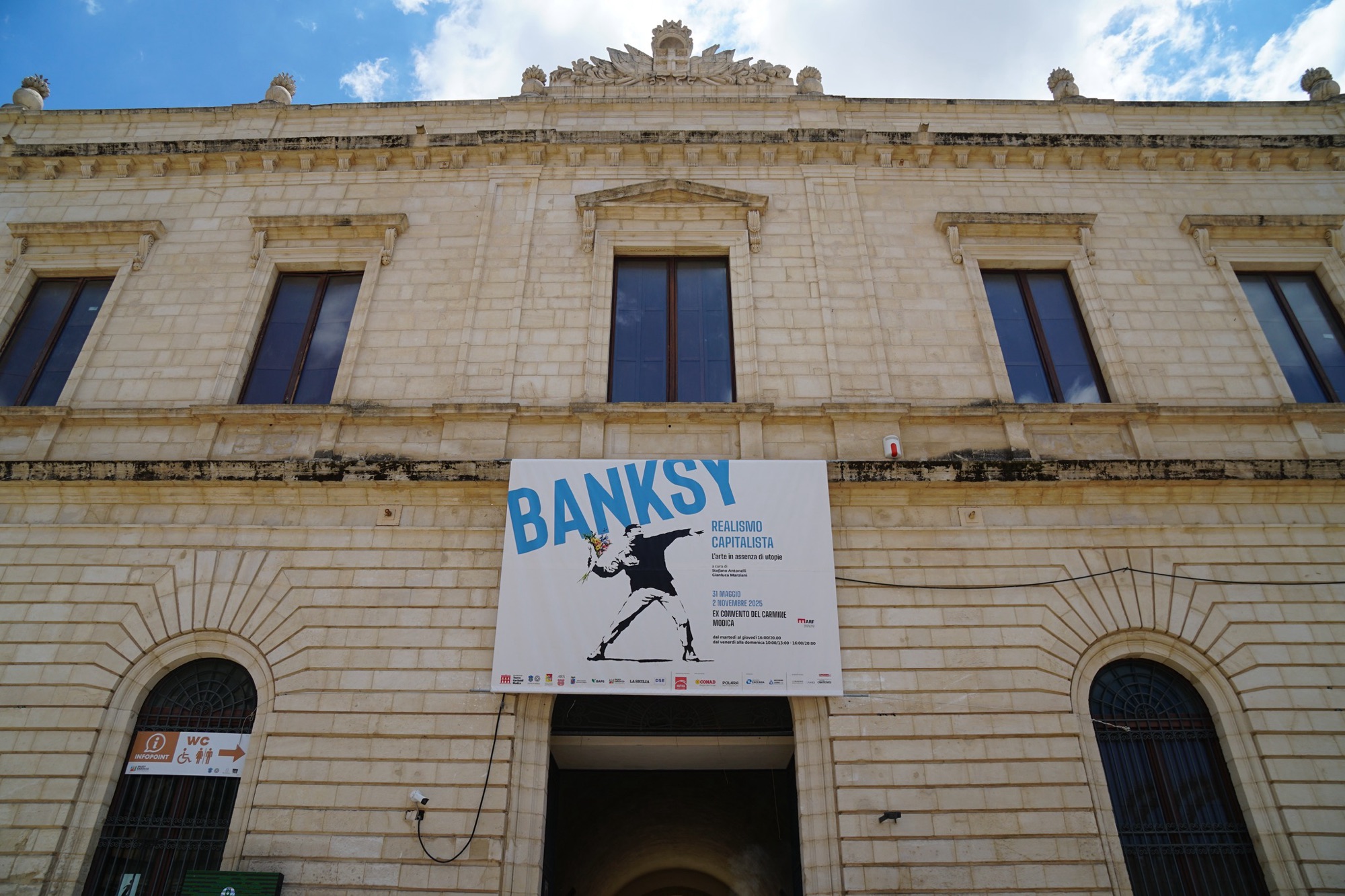 MODICA – L’estate siciliana ha un protagonista silenzioso ma potentissimo: Banksy, l’artista invisibile che ha rivoluzionato il concetto di arte pubblica. Modica, città barocca e sito UNESCO, ospita infatti la mostra “Banksy – Realismo Capitalista”, visitabile fino al 2 novembre all’Ex Convento del Carmine.
