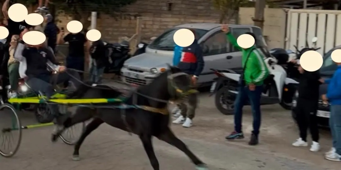 La circonvallazione di Acate si è trasformata in un circuito illegale all’alba di domenica scorsa. Poco dopo le sei, una lunga fila di scooter e moto ha aperto la strada a cavalli imbrigliati in calessi improvvisati, lanciati a tutta velocità tra urla di incitamento e cellulari alzati a riprendere. Ai margini della carreggiata decine di spettatori – molti dei quali giovanissimi – hanno assistito alla scena, applaudendo e condividendo in diretta le immagini sui social.