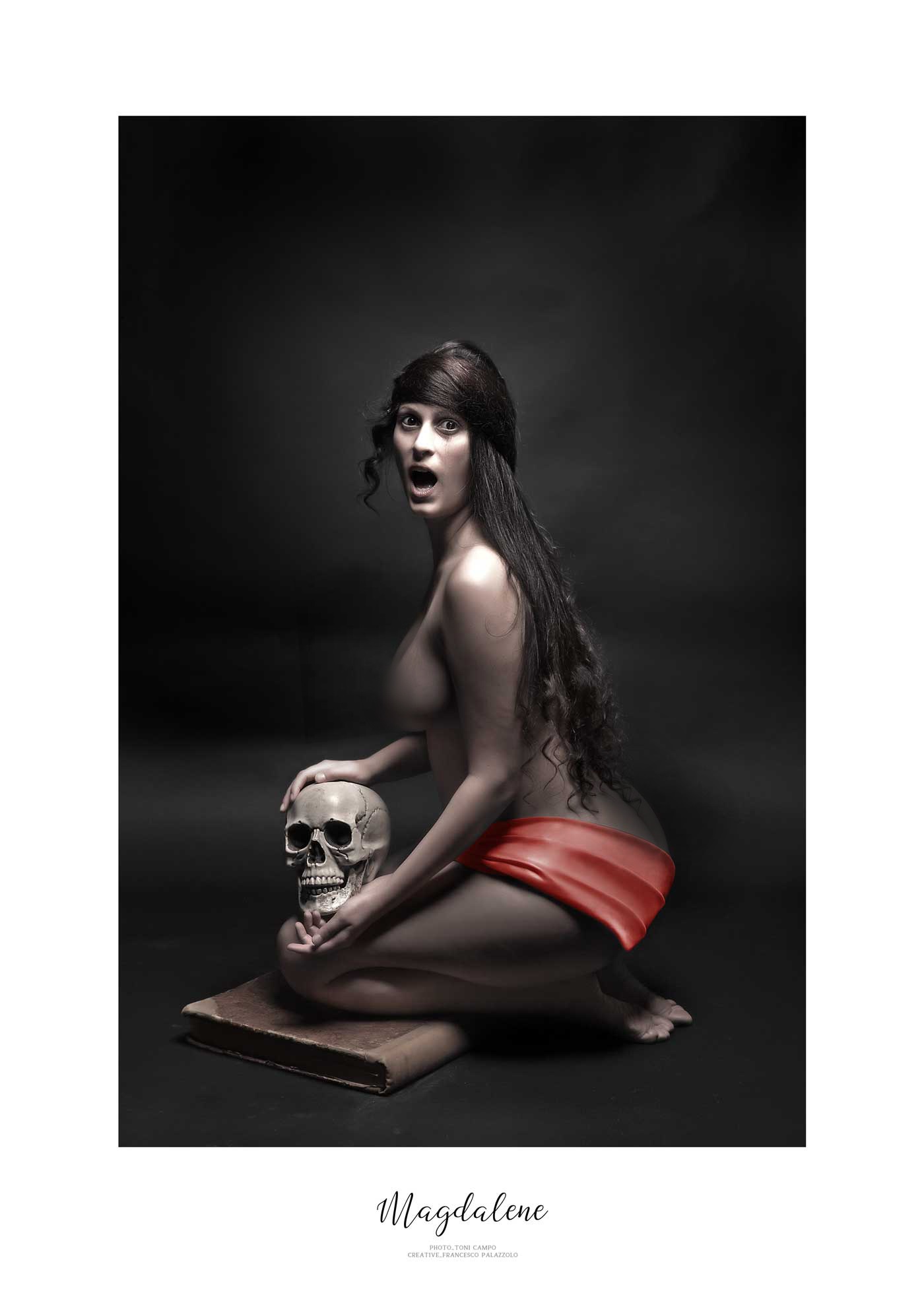 La mostra che si inaugura a San Vincenzo Ferreri rappresenta la tappa conclusiva di un ciclo che l’artista ha iniziato nel dicembre scorso con «MyHeads – MySouls – Negative – Positive», nell’ex chiesa di Santa Teresa, a Chiaramonte Gulfi e che è proseguito con la fortunata mostra «The Passion», ospitata a Comiso, nel cortile della Biblioteca Bufalino, nel periodo pasquale. «The Passion» ha riscosso un grande successo di pubblico e di critica, richiamando anche visitatori da varie regioni d’Italia, moltissimi anche stranieri. “È la terza mostra del ciclo del sacro – aggiunge Campo – che conclude, idealmente, il percorso che ho iniziato”. Nelle foto, Toni Campo affida il suo messaggio interamente ai personaggi, ai loro volti, alla gestualità e alla corporeità. Quasi del tutto assenti gli elementi esterni (es: la Maddalena con il teschio). Questo dà maggiore forza espressiva ai corpi ed ai movimenti su cui unicamente si concentra lo sguardo dello spettatore.