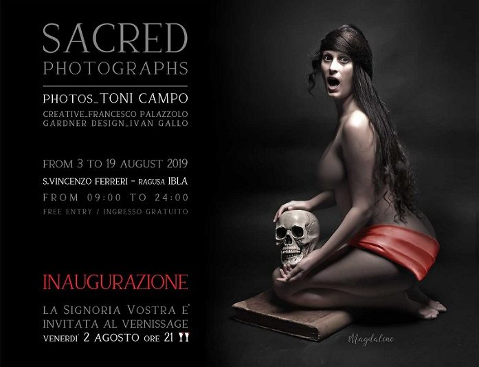Quattordici opere fotografiche sui temi più toccanti delle Sacre Scritture. Dalla Creazione all’attimo prima dell’Apocalisse. Toni Campo espone dal prossimo 3 agosto, all’Auditorium San Vincenzo Ferreri di Ragusa Ibla. La mostra si intitola “Sacred photographs”. Resterà aperta tutti i giorni, fino al 19 agosto, dalle ore 9 alle 24.