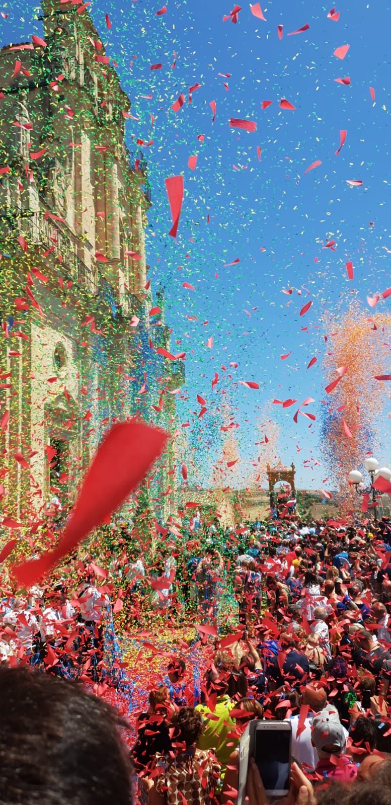 Ogni anno, ogni 5 agosto, Giarratana festeggia la sua Patrona. Non è facile spiegare la festa della Madonna della Neve a chi non è giarratanese e a chi non la vive, è la festa di una comunità che rinnova la propria identità grazie all’appartenenza comune, al sentirsi parte di una collettività che rinnova la propria devozione nei confronti della Patrona. Una festa che concentra il suo momento clou nella cosiddetta “Sciuta”, l’uscita del simulacro tra il fragore dei fuochi d’artificio e l’esplosione di carta (quest’anno ad aria compressa). I portatori, come se fosse una sola a mano a guidare questa moltitudine di persone, hanno fatto uscire il simulacro dalla basilica di Sant’Antonio Abate, dopo l’incedere assordante dei tamburi di Giarratana. Dopo il rito della “Sciuta”, si è avviata la processione per le vie del centro storico, poi il rientro della processione in chiesa Madre e l’omaggio floreale a San Bartolomeo, apostolo patrono di Giarratana e al patriarca San Giuseppe. La festa è proseguita alle 16,30 con il giro per le vie cittadine del corpo bandistico e l’esecuzione di marce sinfoniche in piazza. Alle 17 la tradizionale cena con la vendita all’asta dei doni offerti. Alle 19,30, in chiesa Madre, la solenne celebrazione eucaristica presieduta da don Mauro Nicosia, parroco della parrocchia San Paolo apostolo a Ragusa.