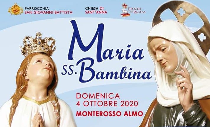 E’ l’ultima delle feste religiose della stagione estiva. Dopo San Giovanni Battista e dopo la Madonna Addolorata, la comunità dei fedeli di Monterosso Almo si mobilita dall’ultima domenica di settembre per le celebrazioni in onore di Maria Santissima Bambina.
