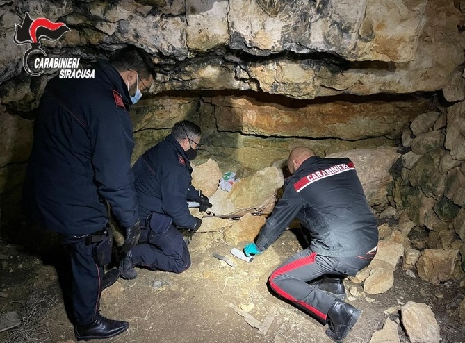 I carabinieri di Noto hanno trovato in una grotta all’interno di una cava dismessa, al confine tra Noto e Rosolini armi e droga, nel dettaglio: un fucile, tre pistole, di cui due rubate, circa un centinaio di munizioni di vario calibro, due bilancini di precisione, circa 700 grammi di cocaina, 600 grammi di eroina e circa un chilo di hashish. La droga e le armi erano in buste di plastica e zaini. Le armi sequestrate, su disposizione della Procura di Siracusa, verranno inviate al Ris di Messina per gli accertamenti.