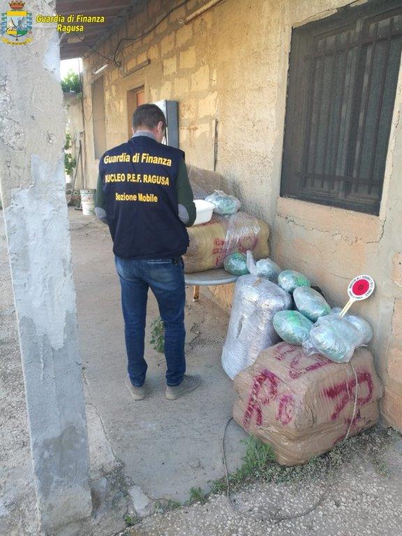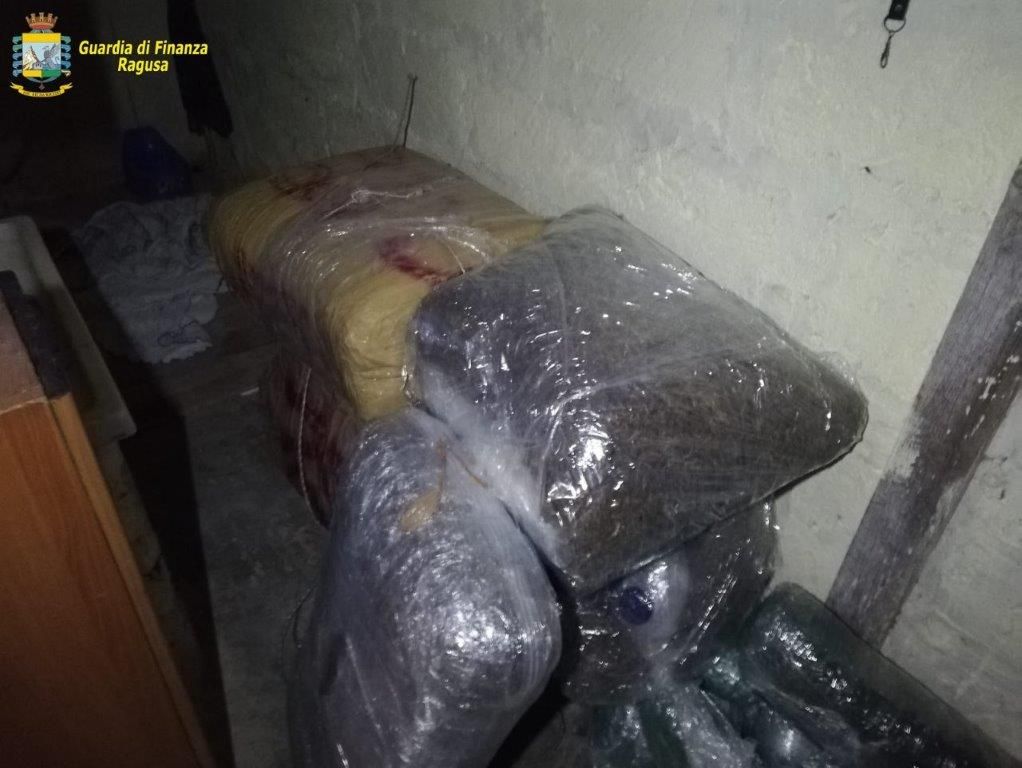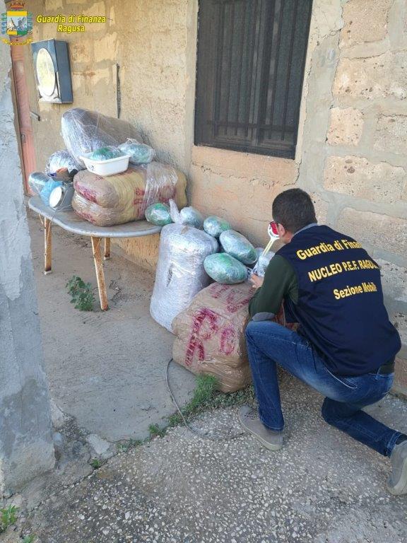 La droga era nascosta, insieme a coltelli e attrezzature per il confezionamento dello stupefacente, in un casolare abbandonato al confine tra i comuni di Vittoria e Acate