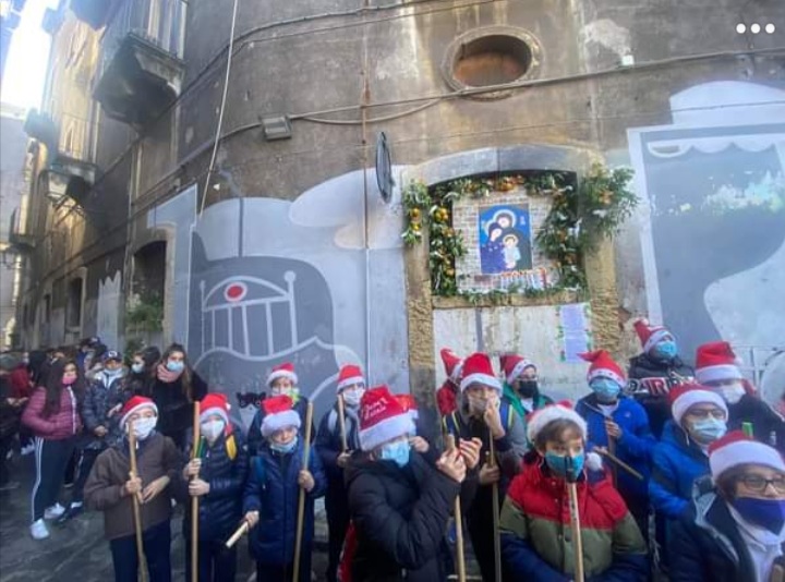 Le nenie natalizie intonate dai bambini delle scuole di Catania hanno accolto ieri in piazza Goliarda Sapienza, già piazza delle Belle, il sindaco, Salvo Pogliese, e l’assessore alla Pubblica Istruzione, Barbara Mirabella, per l’avvio dei percorsi di visita del progetto “Adottiamo una cona”. Un itinerario alla riscoperta della tradizione delle antiche edicole votive catanesi, ciascuna adottata da una scuola, decorata con festoni di agrumi e dolciumi e quindi illustrata ai visitatori dai ragazzi nelle vesti di preparatissimi “ciceroni” oltre che di cantori e musici. A curare l’iniziativa, gli uffici attività parascolastiche della Pubblica Istruzione con gli animatori scolastico-culturali della sezione didattica storico-monumentale. Gli istituti scolastici che hanno partecipato sono: “Battisti”, “Deledda”, ”Diaz”, “Manzoni”, “Tempesta”, “Petrarca”, “S.Giovanni Bosco”.