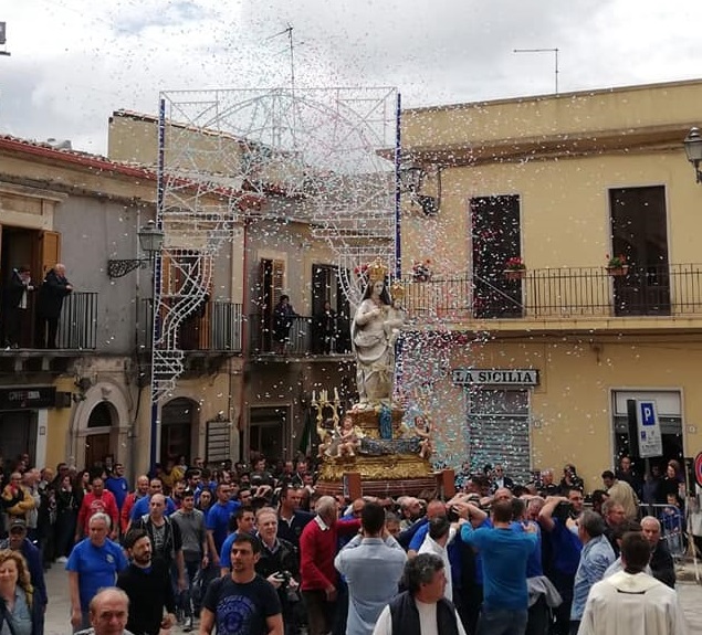 Il simulacro della Madonna, a spalla, è stato portato in Chiesa Madre per l'avvio del novenario. I festeggiamenti proseguiranno fino al 12 giugno