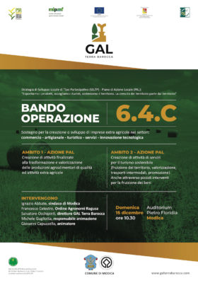 Partiranno da Modica, domenica prossima 15 dicembre alle ore 10,30 all’auditorium Floridia, i focus di approfondimento promossi dal GAL Terra Barocca per illustrare i dettagli dei due importanti e attesi bandi che permettono di offrire un sostegno per nuovi progetti di sviluppo nei territori dei Comuni di Ragusa, Modica, Scicli, Ispica e Santa Croce Camerina. A disposizione delle imprese private, anche start up, ci sono quasi due milioni di euro che il consiglio di amministrazione del GAL ha deciso di destinare all’ambito 1 e ambito 2 della sottomisura 6.4.C che prevede il supporto agli investimenti “per la creazione o sviluppo di imprese extra-agricole nei settori commercio – artigianato – turismo – servizi – innovazione tecnologica”.