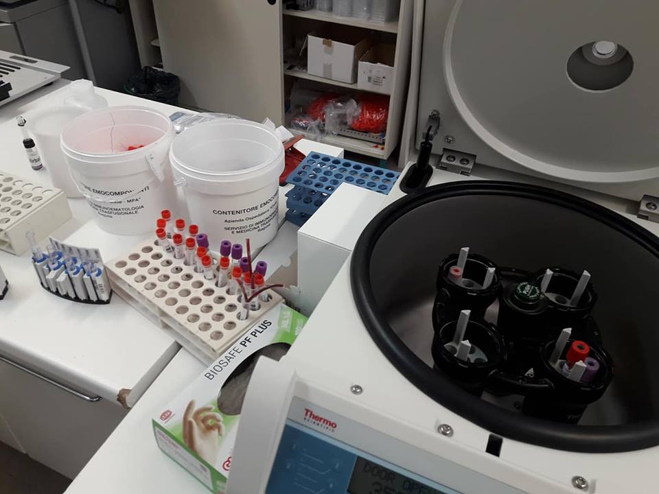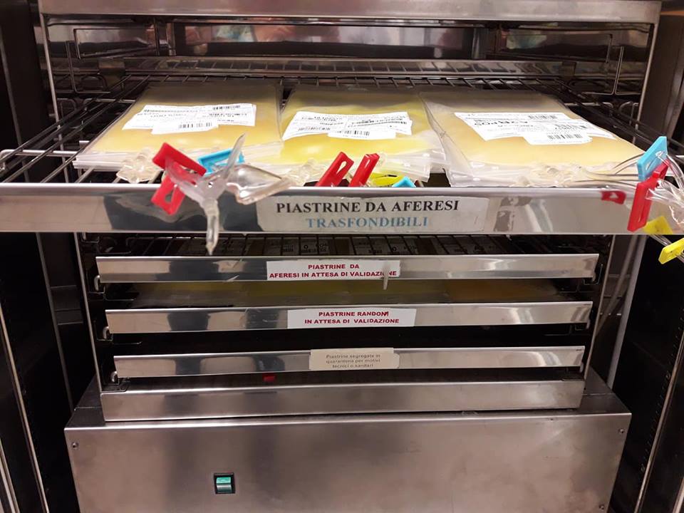 Arrivano i dati in tempo reale da tutte le AVIS. Già mentre avviene una donazione le nostre apparecchiature si preparano alla esecuzione dei test di legge per poter utilizzare l’unità donata e per i controlli sulla salute del donatore. Entro la mattinata riceviamo tutto, entro le 18 abbiamo già gli esiti dei controlli. Nelle varie sedi del SIMT arrivano sangue intero, plasma, piastrine. Per ogni tipologia abbiamo un trattamento differente che riusciamo a garantire grazie a personale altamente qualificato e macchine all’avanguardia. Ci sono le unità che vanno scomposte e quelle che vanno congelate, quelle che devono stare costantemente in movimento (le piastrine) e quelle destinate alle scorte per le maxi emergenze, quelle che sono in attesa di essere analizzate e quelle che vanno trasfuse, e così via. Abbiamo anche una riserva di globuli rossi congelati che va costantemente tenuta ad una temperatura di – 80 gradi C°, sebbene la logica sia quella di avere una scorta minima e di non tenere troppo congelato, ma di avere il donatore, soprattutto quello di gruppo raro, facilmente convocabile quando serve.