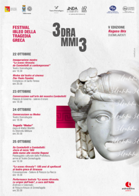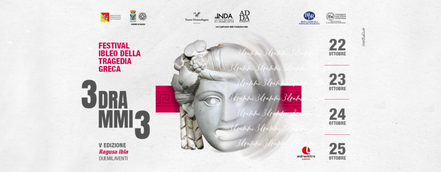 Come una splendida agorà, Ragusa Ibla diventa nuovamente palcoscenico del Festival 3drammi3. Dal 22 al 25 ottobre torna la manifestazione iblea dedicata alla tragedia greca, giunta alla sua quinta edizione. La magnificenza dell’architettura barocca apre le sue porte alla profondità del dramma antico: come la cornice di un capolavoro artistico ne esalta la bellezza, così lo splendore ibleo evidenza la rilevanza dell’evento. Organizzata e promossa dal Teatro Donnafugata con la direzione artistica delle sorelle Vicky e Costanza Di Quattro, in stretta sinergia con l’Inda e con l’Adda di Siracusa, la manifestazione gode del contributo della Regione Siciliana – Assessorato Turismo, Sport e Spettacolo, del patrocinio dell’Assessorato agli Spettacoli del Comune di Ragusa e della collaborazione dell’Università degli Sudi di Catania.