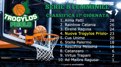 La Nuova Trogylos Priolo vince la sesta partita di fila (47-53) in casa del Rescifina Messina e conquista matematicamente la zona play-off con una giornata d’anticipo dalla fine della prima fase del campionato. Un risultato che premia gli sforzi di un team dal nome glorioso, rinato dalle ceneri di quella che fu la storica Trogylos Priolo Basket, vincitrice di due scudetti in A1 e di un’incredibile Coppa in Eurolega. Un orgoglio che le ragazze, allenate quest’anno da coach Gino Coppa, si sono portate dietro ripartendo nel 2014 dal campionato di Serie C e agguantando in questa stagione la serie B. Iniziata in maniera zoppicante, come conferma lo stesso tecnico, nel girone di ritorno è iniziata la risalita con un ruolino di tutto rispetto che ha portato la compagine priolese a ben sei vittorie di fila e il record di squadra col miglior rendimento dentro casa, nonostante un roster limitato a causa di malanni ed infortuni.