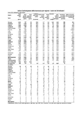 Le differenze che saltano all’occhio hanno a che vedere, in particolare, con 10 indicatori: tempi della giustizia civile e tributaria, tempi di pagamento della Pubblica Amministrazione, lunghezza delle code negli uffici pubblici, pratiche on line gestite dai Comuni, durata delle opere pubbliche, corruzione, qualità di governo, assenteismo per malattia dei dipendenti pubblici e creazione di valore delle società partecipate dagli enti territoriali.