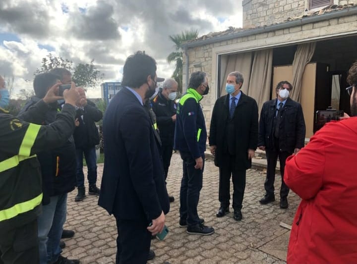 Intanto il presidente Musumeci ha visitato i luoghi più colpiti dalla tromba d'aria