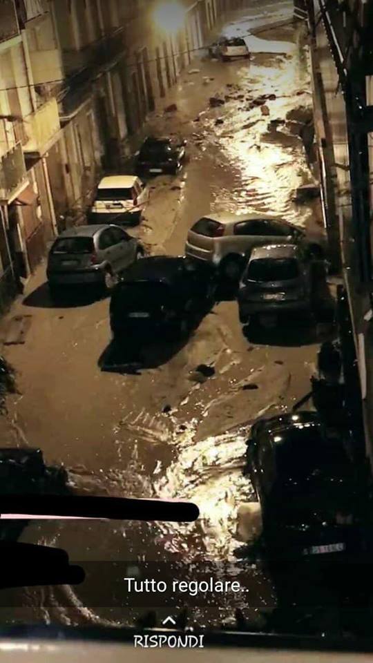 Sicilia orientale devastata dai nubifragi. Dopo il forte vento della giornata di ieri, da Catania al Ragusano, la pioggia ha iniziato a scendere copiosa ieri sera intorno alle 18; a tratti, nella tarda serata, ha fatto una piccola pausa, ma il peggio doveva ancora venire. Nel corso della notte, un temporale violentissimo accompagnato da una tempesta di fulmini ha ingrossato i fiumi e bloccato la gente nelle case.