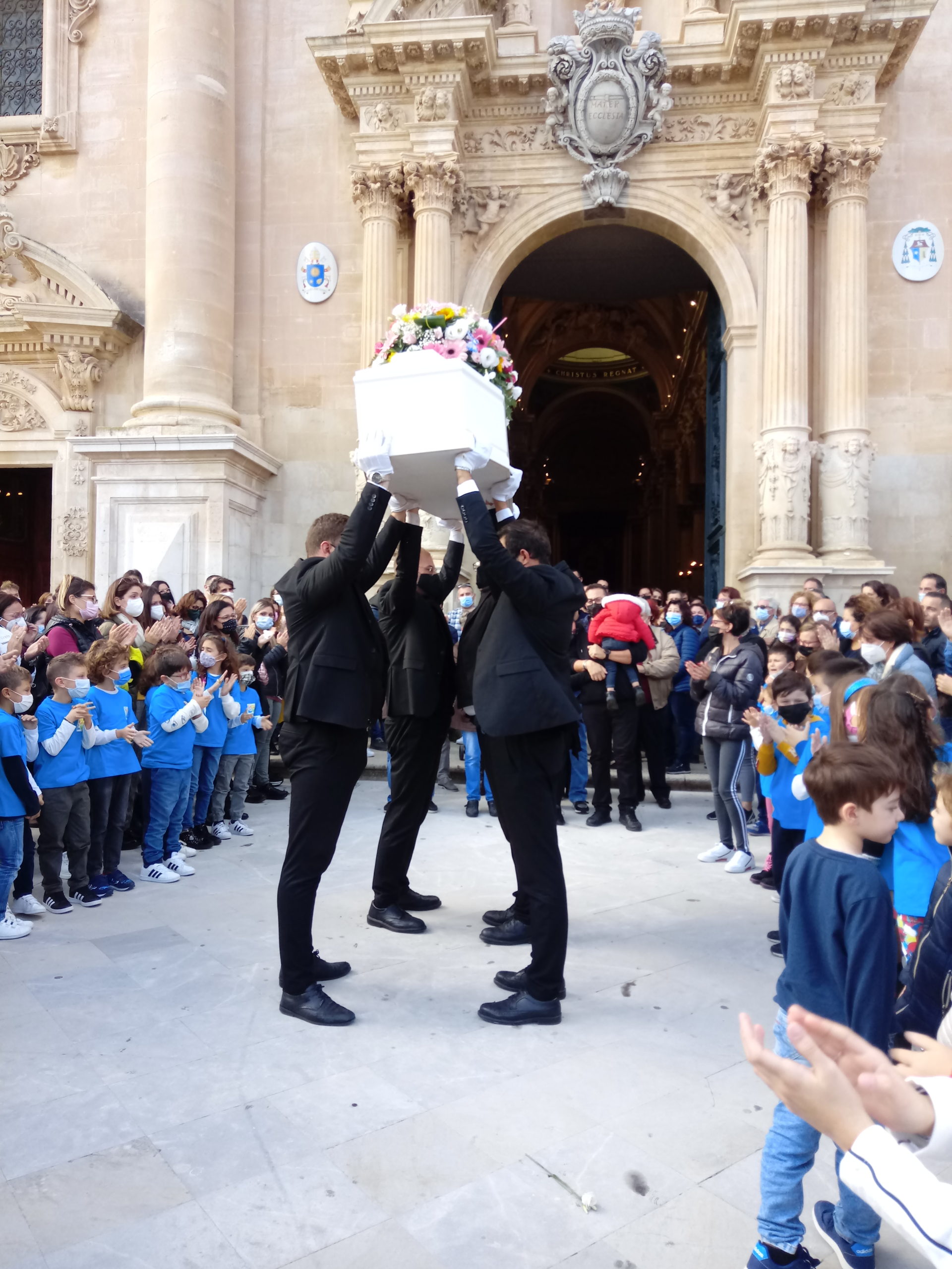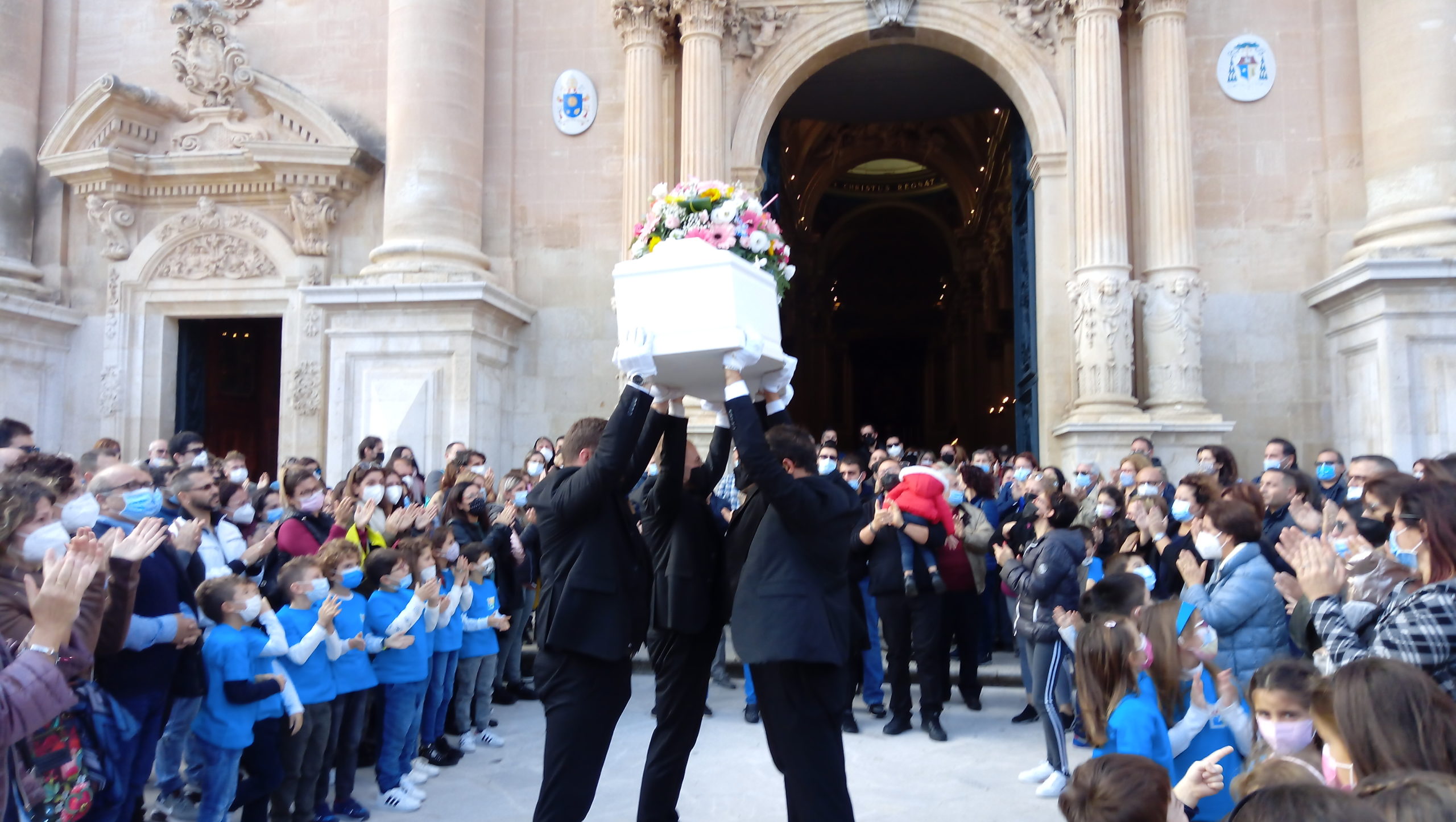 Tanto dolore e profonda commozione per l’ultimo saluto a Francesca Cutello, la bambina di Ragusa deceduta a soli 7 anni a causa di un soffocamento nel sonno. I funerali si sono svolti questa mattina alle 12, nella Cattedrale di San Giovanni Battista. Le esequie sono state officiate da Don Nicola Iudica, Don Giuseppe Russelli e il Don Giuseppe Burrafato. Nell’omelia di Don Nicola Iudica ha detto:” Non ci sono risposte alla morte di Francesca, ma è resuscita insieme a Gesù. Ma Francesca, ora sta correndo in paradiso. Gesù, in questo momento sta piangendo con noi”.