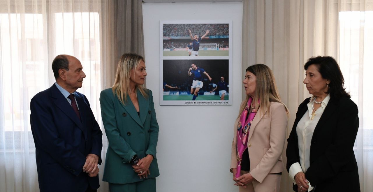 Una sala riunioni dell’assessorato regionale dello Sport porta ora il nome di Totò Schillaci, l’indimenticato protagonista dei Mondiali di Italia ’90, scomparso lo scorso 18 dicembre. La cerimonia di intitolazione si è svolta questa mattina nella sede di via Notarbartolo, a Palermo, alla presenza del presidente della Regione Renato Schifani, dell’assessore regionale allo Sport Elvira Amata e di altre autorità istituzionali e sportive, tra cui la moglie del calciatore, Barbara Lombardo.