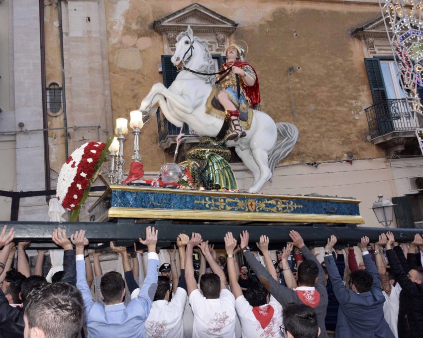 Sarà una cerimonia composta, sentita e ricca di spunti spirituali quella che si terrà sabato sera, 15 giugno, al Duomo di Ragusa in occasione della reposizione del simulacro di San Giorgio martire e dell’Arca santa. Dopo i solenni festeggiamenti del glorioso patrono della città, che hanno preso il via con la “Scinnuta” di domenica 21 aprile, quello di sabato sarà l’atto conclusivo di un periodo di venerazione durato quasi due mesi nei confronti del glorioso patrono il cui simulacro, adesso, sarà ricollocato nella nicchia che lo ospita tutto l’anno. Prima, però, dal transetto delimitante l’altare, i portatori si interesseranno all’Arca santa, contenente numerose reliquie, che, con un complesso sistema di argani, sarà allo stesso modo riposta nella propria nicchia. I portatori si sistemeranno dinanzi all’altare per dare il via al tradizionale momento di accompagnamento del simulacro nella propria nicchia. E ci sarà il tempo per la consueta “ballata”, oltre che per dare modo ai devoti e ai fedeli presenti di “salutare” San Giorgio, dando l’arrivederci al prossimo anno.