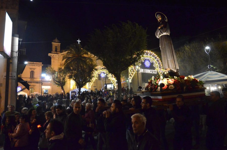 Moltissimi fedeli e devoti hanno partecipato, ieri sera, alla processione con il simulacro di San Francesco d’Assisi per le vie del centro storico superiore di Ragusa. Il corteo processionale, accompagnato dal corpo bandistico Vito Cutello di Chiaramonte Gulfi, diretto dal maestro Paolo Scollo, guidato dal sacerdote Giuseppe Ramondazzo, è stato caratterizzato dalla sosta al monastero delle Carmelitane e da quella al santuario della Madonna del Carmine. L’altra sosta, poi, al Ponte Vecchio intitolato a padre Scopetta. Qui sono stati sparati i fuochi d’artificio di una festa che sembra essere ritornata ai fasti di un tempo grazie all’impegno del parroco, don Nicola Iudica, e dell’intero comitato. Prima delle processione, la santa messa presieduta da padre Renato Dall’Acqua, priore dei carmelitani. La celebrazione eucaristica è stata animata dalla comunità parrocchiale e caratterizzata dalla partecipazione delle autorità civili e militari. Padre Dall’Acqua ha tratteggiato gli elementi distintivi della figura del poverello d’Assisi il cui messaggio evangelico ha ancora oggi una valenza parecchio forte e pregnante. La giornata, ieri, si era aperta in mattinata con la santa messa animata dai ragazzi a cui ha fatto seguito la benedizione degli animali. In serata, poi, grande successo, in piazza Cappuccini, per le performance musicali che si sono succedute. Prima, ad aprire l’appuntamento, sono stati i “Fell Mood”, quindi applausi importanti per l’esibizione del coro Mariele Ventre diretto dalla maestra Giovanna Guastella.