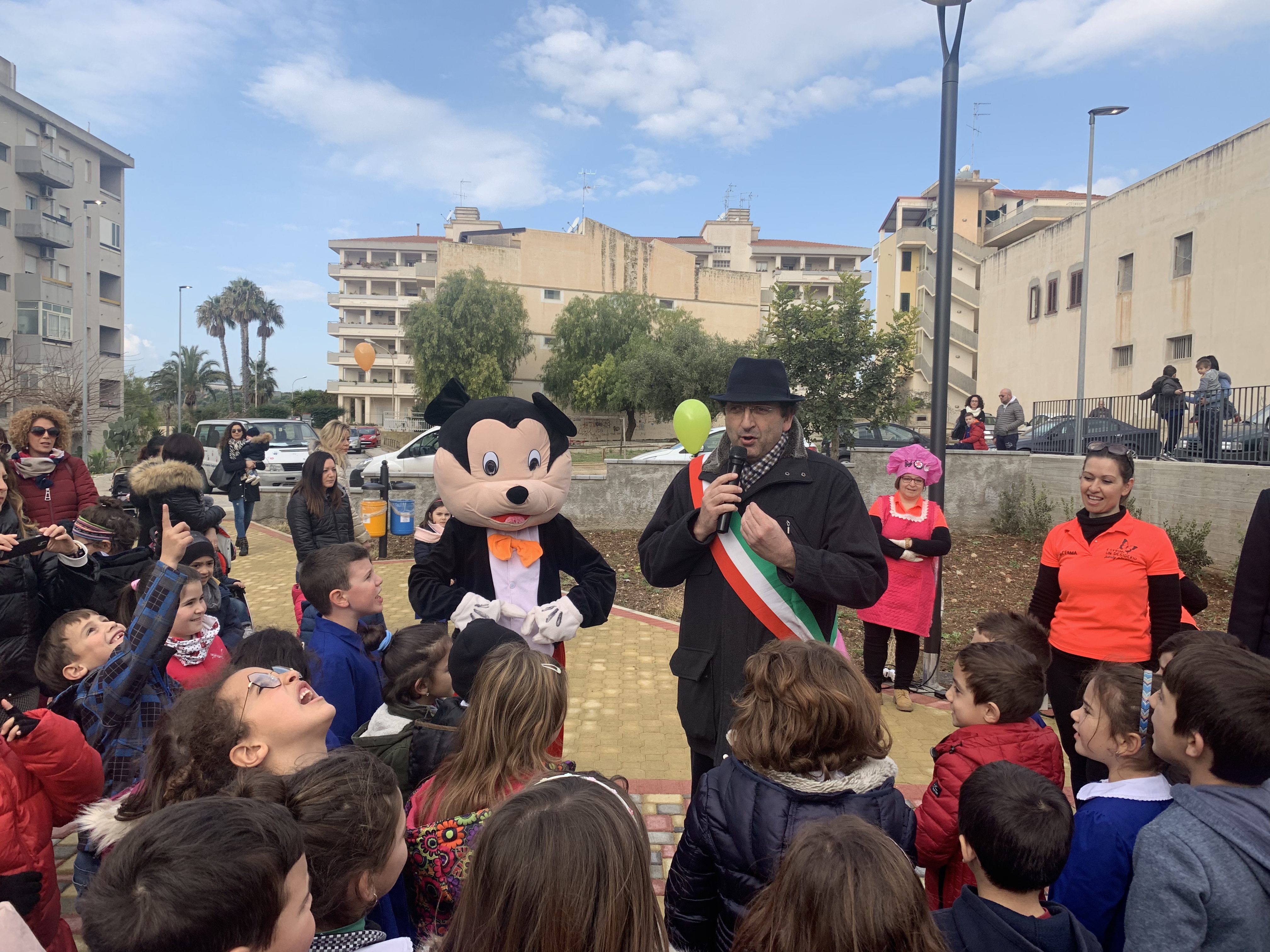 Zucchero filato e un Topolino festante. Grandi e piccini hanno partecipato all’inaugurazione della bambinopoli di via Ciliegio a Jungi, a Scicli. Realizzata nell’ambito dell’accordo pubblico-privato del Piano Integrato di Jungi, il parco giochi è il primo momento di una riqualificazione complessiva del quartiere più popoloso della città,