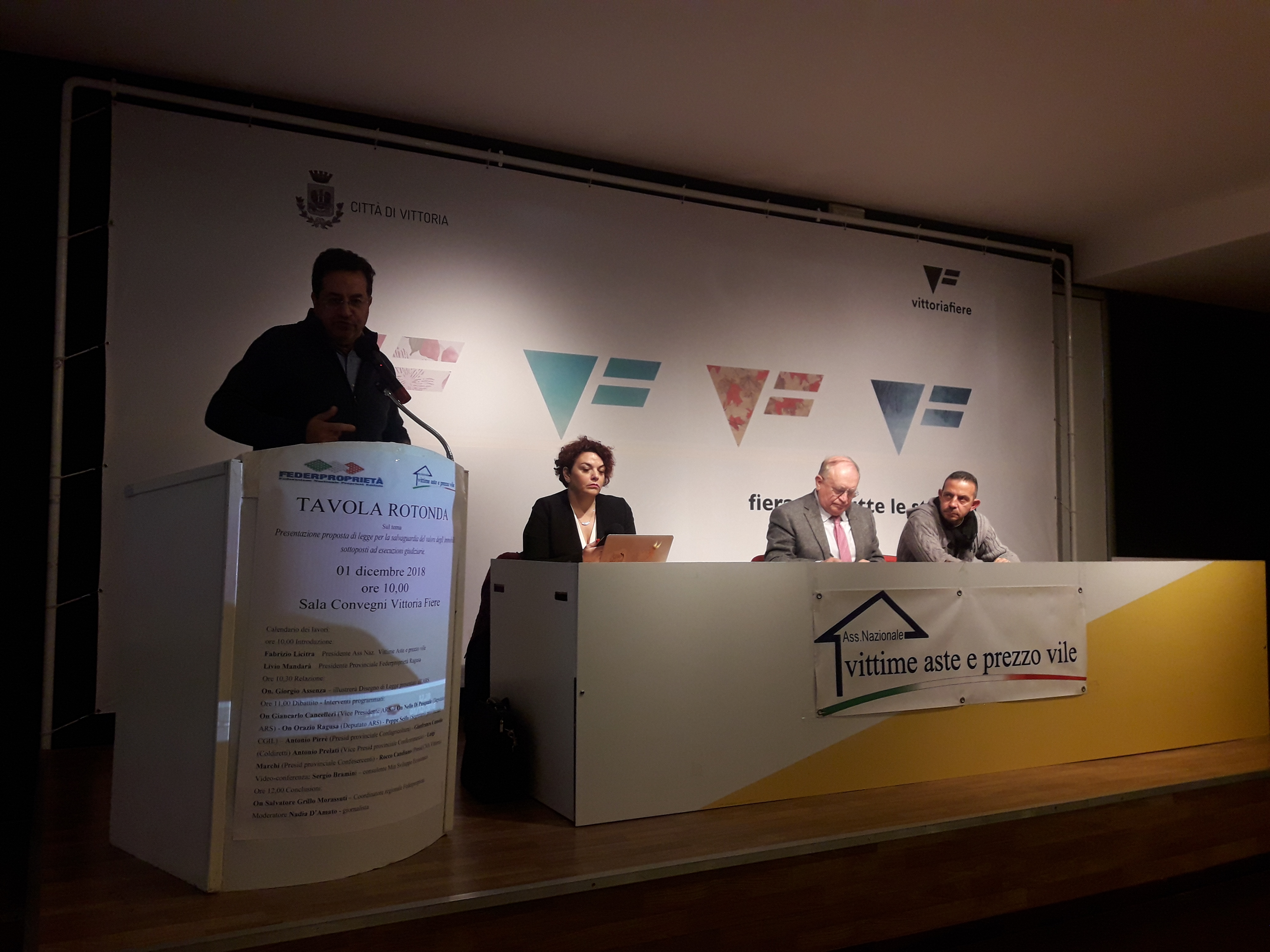 Come tutelare chi rischia di perdere la prima ed unica casa perché all’asta? Se ne è parlato sabato mattina, alla sala convegni della Fiera Emaia di Vittoria, nel corso di un incontro promosso dall’Associazione Nazionale Vittime Aste e Prezzo Vile, rappresentata da Fabrizio Licitra, e da Federproprietà, con il coordinatore regionale Salvatore Grillo Morassuti e il presidente provinciale Livio Mandarà. L’importante confronto è servito per illustrare il nuovo disegno di legge per la salvaguardia del valore degli immobili sottoposti ad esecuzioni giudiziarie dell’On. Giorgio Assenza, uno strumento legislativo che approda ora a Palermo con l’appoggio di tutti i parlamentari regionali iblei, perché, come ha sottolineato l’On. Nello Dipasquale nel suo intervento, “è una questione che riguarda tutti, al di là delle appartenenze politiche” e perché, come evidenziato, invece, dall’On. Stefania Campo, “lo Stato sta lavorando bene, ma anche la Regione può fare molto in virtù della sua autonomia statutaria”.